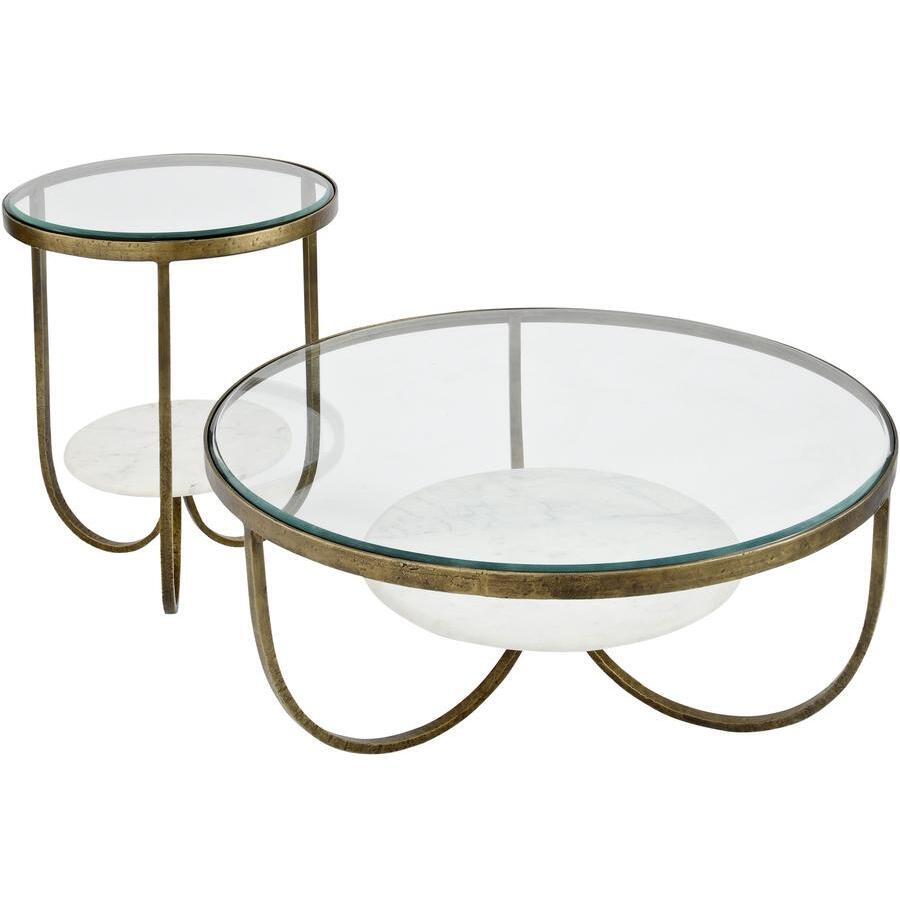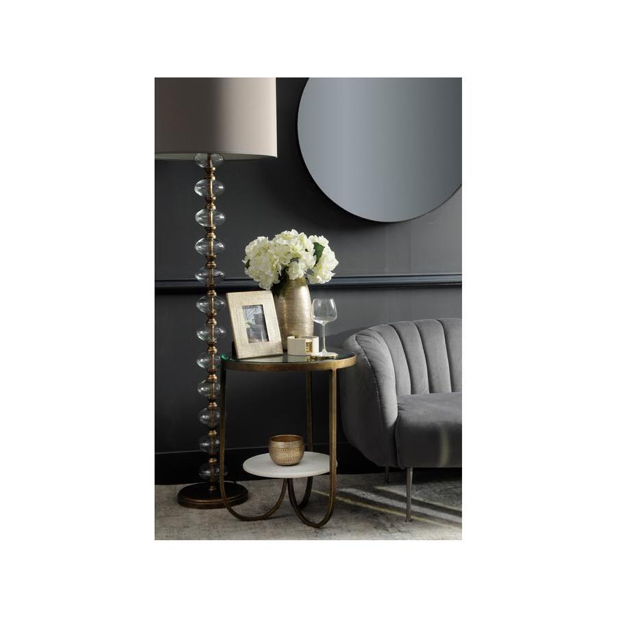Elegant and stylish coffee table combining a white marble floating style shelf with a bevelled glass top and antique gold frame. Due to the inherent nature of the marble there will be some variance from piece to piece. Weight: 19. 16 kg. *Moot Trading Ltd is not a lender and acts only as an introducer. The credit product is provided by Klarna Bank AB (publ). Credit is only available to permanent UK residents aged 18 and over, subject to status. Terms and conditions apply. Please note that the following products are not regulated by the FCA: Pay in 30 days and Pay in 3 instalments. Read More.