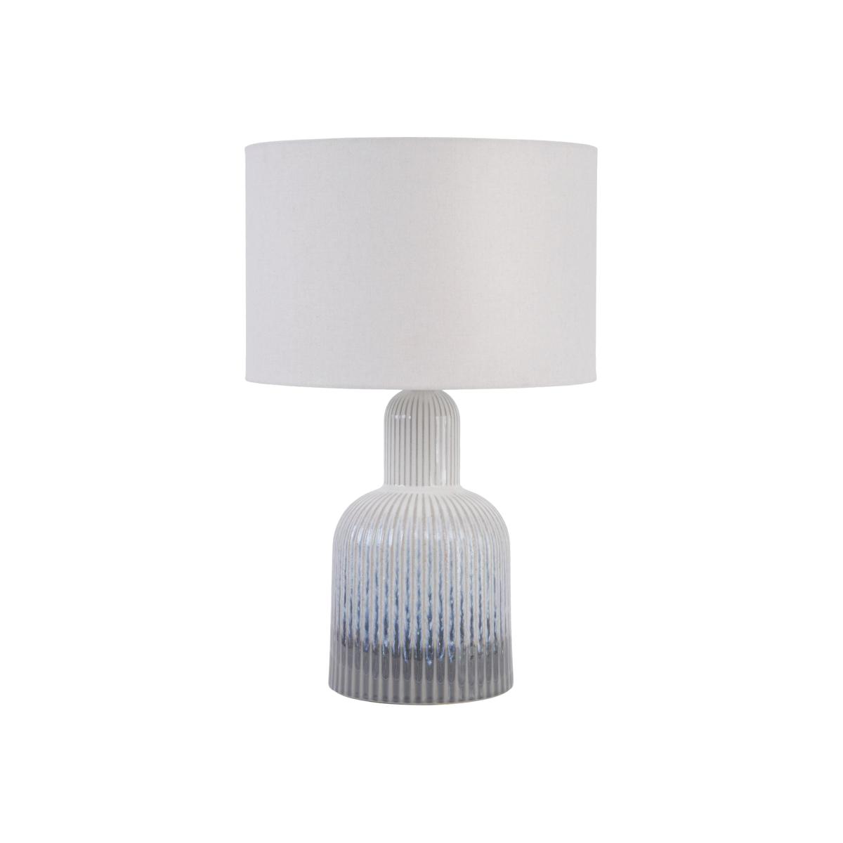 This stunning porcelain lamp features a ribbed bottle-shaped base and a stunning two-tone glaze effect in grey and white. The two shades blend beautifully together with the edges creating a soft om. View More. This stunning porcelain lamp features a ribbed bottle-shaped base and a stunning two-tone glaze effect in grey and white. The two shades blend beautifully together with the edges creating a soft ombre effect that will look wonderful in a laid-back contemporary interior. A cylindrical shade in crisp white linen complements the base perfectly.