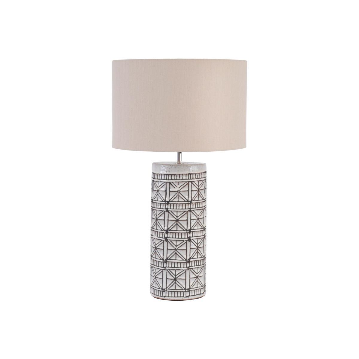Libra Porcelain Table Lamp Geo Pattern & Natural Shade Large Brown