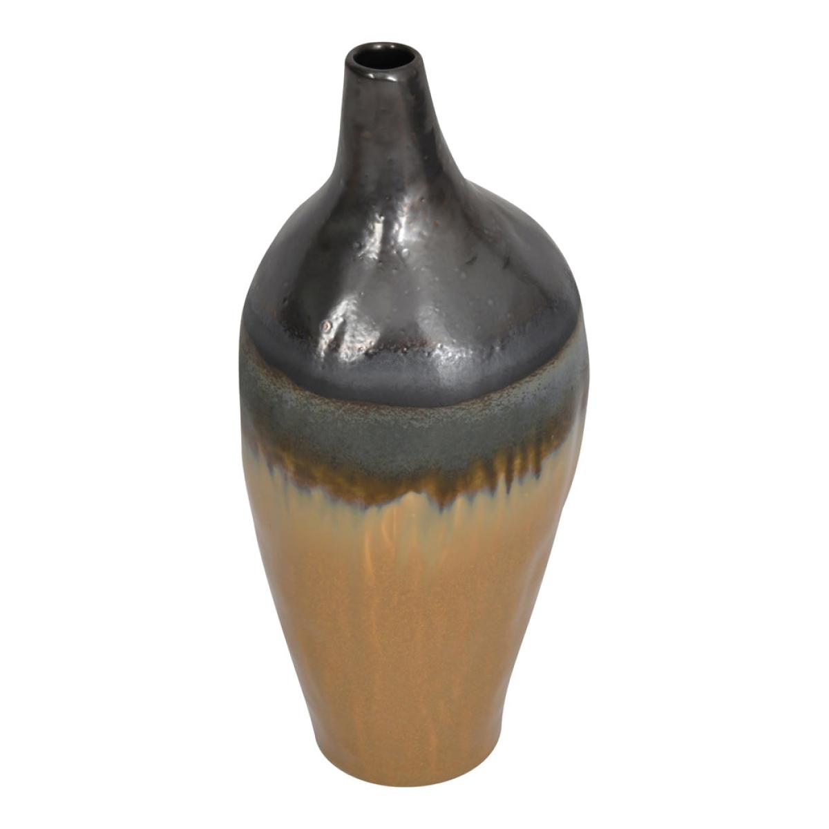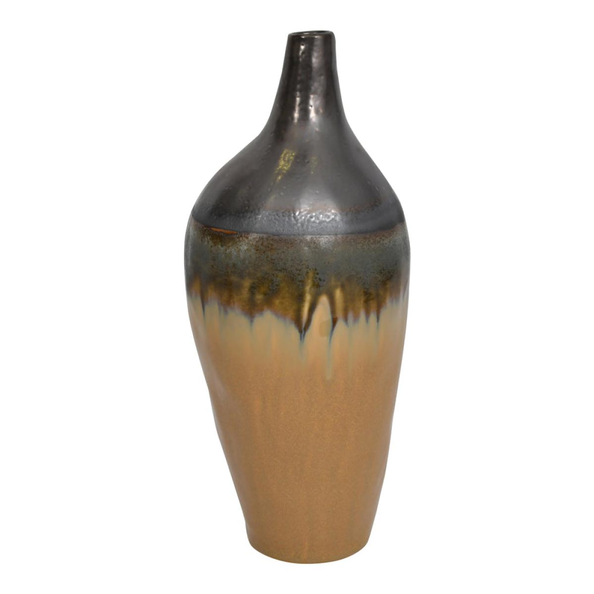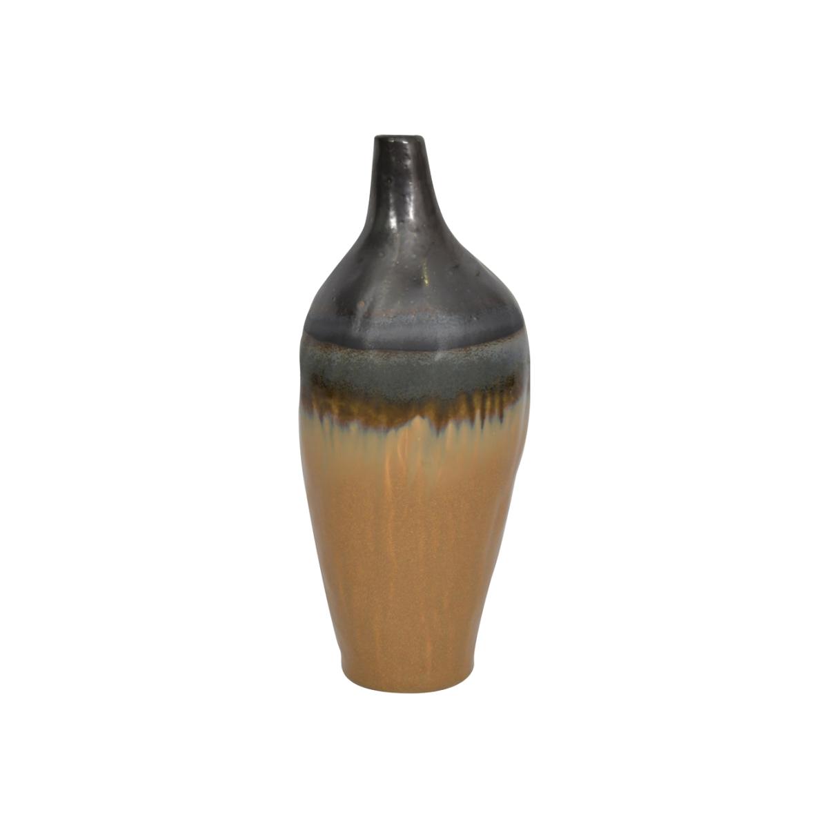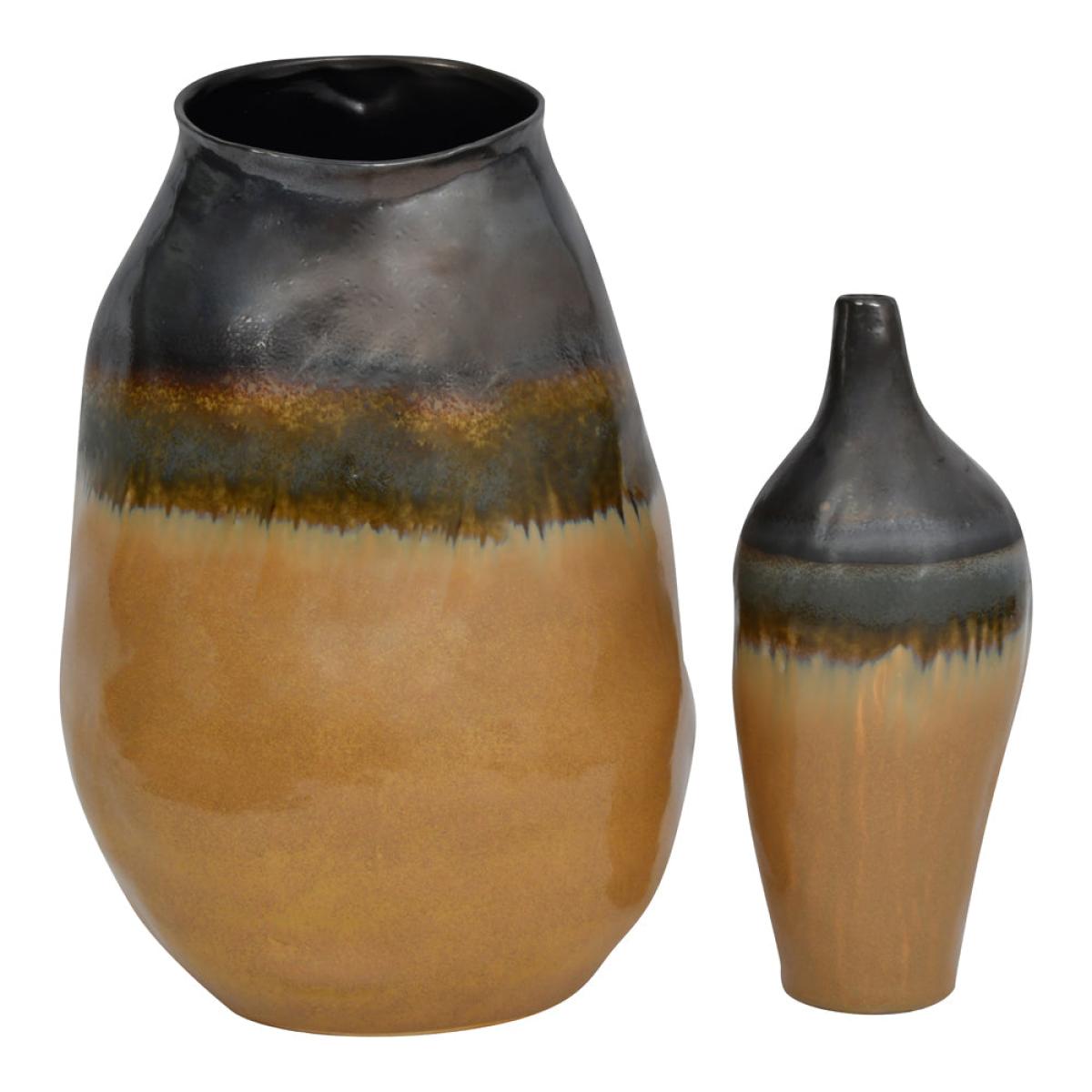 The Libra Selma Vase is the perfect addition to your home if you are looking for an ornament which really stands out. This small vase has been crafted out of fine earthenware and has been finished. View More. The Libra Selma Vase is the perfect addition to your home if you are looking for an ornament which really stands out. This small vase has been crafted out of fine earthenware and has been finished with a reactive glaze. This piece is a mixture of earthy colours. The bottom half of the vase is an ochre yellow and this colour bleeds into the top half of the vase, which is a chocolate brown. The shape of the vase is asymmetrical, which adds to its individuality. The Libra Selma Vase measures in at 15cm in width, 15cm in depth and 38cm in height.