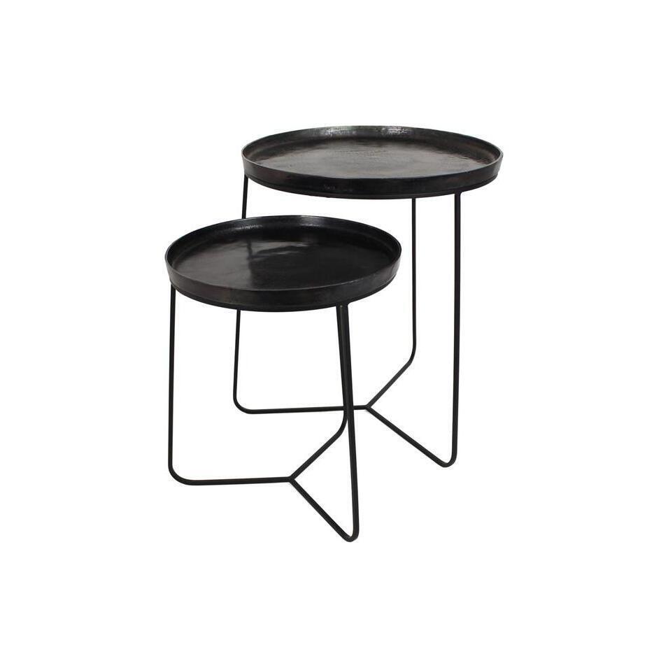 This striking pair of side tables will make the perfect addition to an industrial-inspired interior. Crafted from metal the tables showcase a distinctive black finish which emphasises their clean silhouette. The tray tops prevent smaller accessories from rolling off as well as offering an additional design detail.