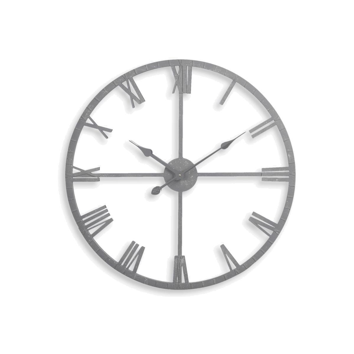 Inspired by industrial design, this skeleton wall clock from Libra has a hand-finished iron frame with Roman numerals and decorative clock hands. The mirrored clock face reflects the light and catches your eye.
