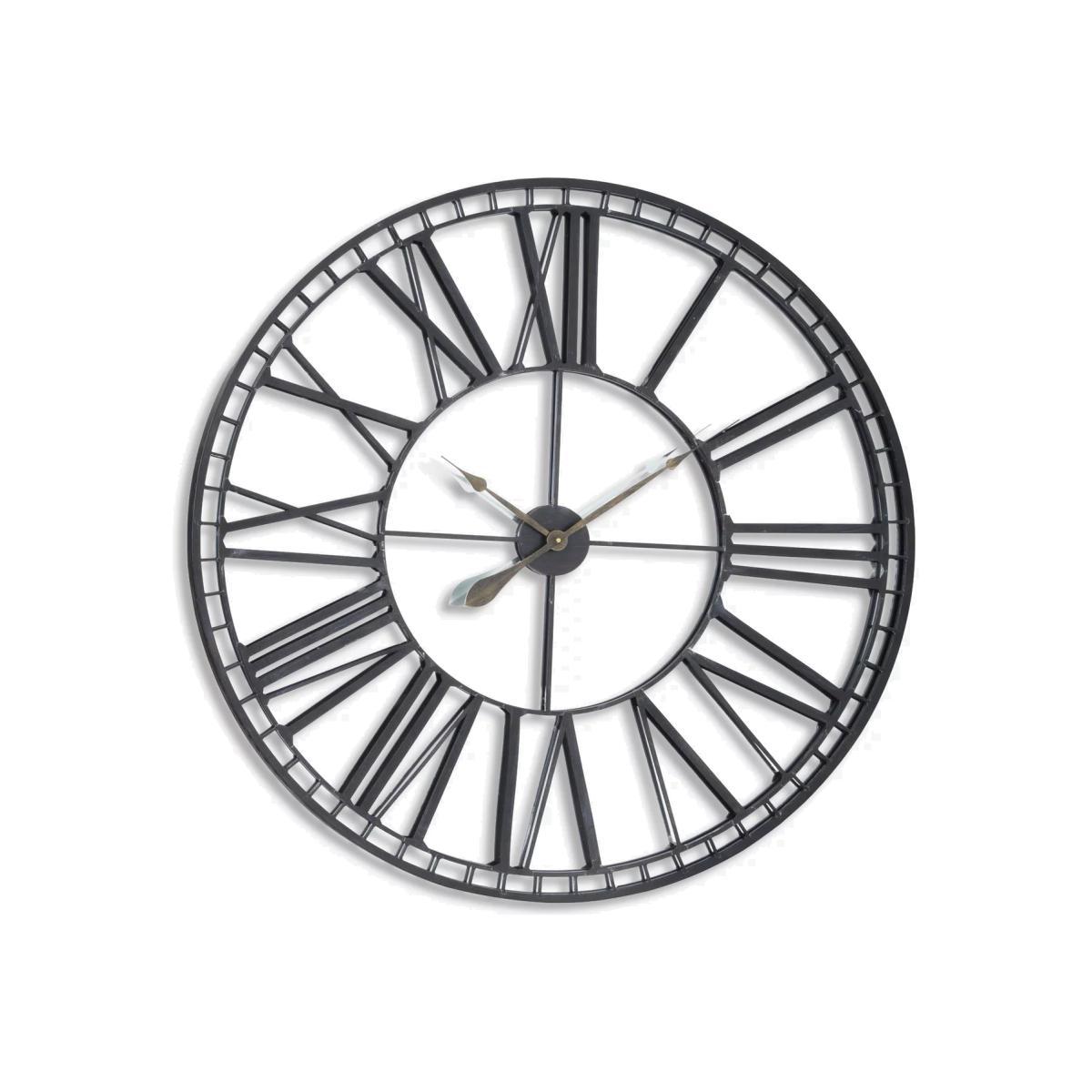 A merging of modern and traditional design, this skeleton wall clock from Libra is over-sized with elongated Roman numerals and an iron frame. The mirrored clock face reflects the light and catches your eye.