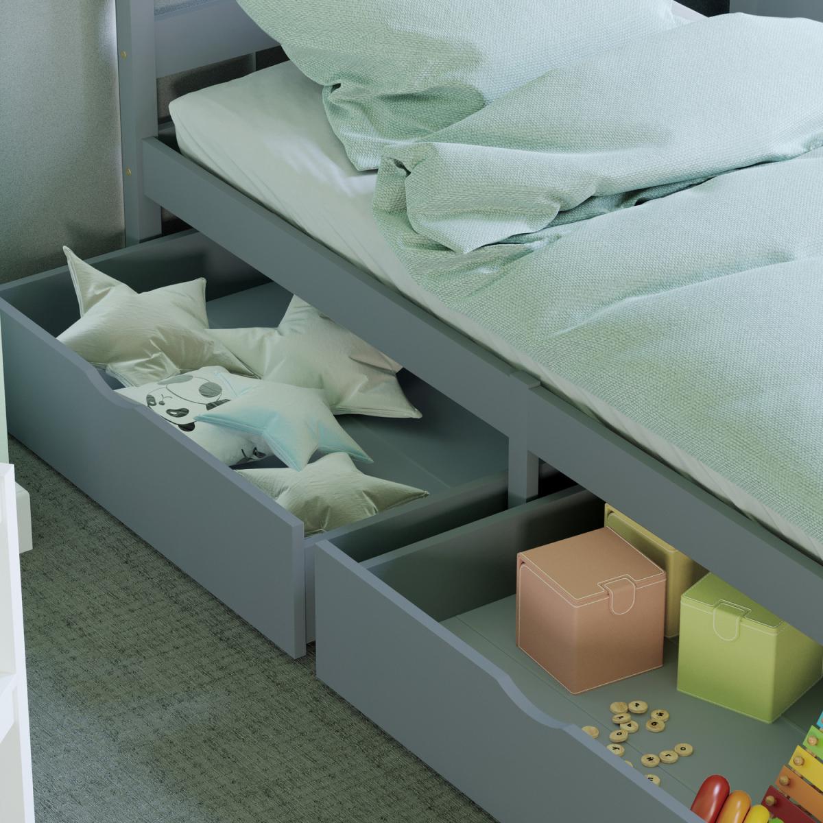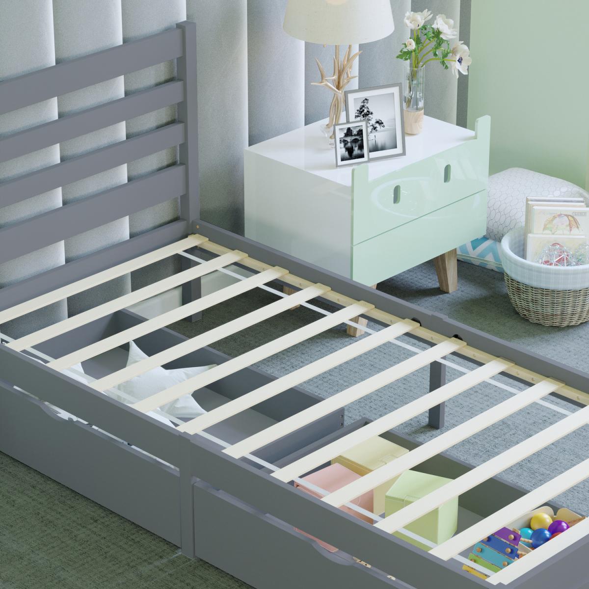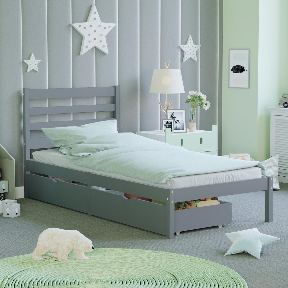 Libra Solid Pine Single Bed with Underbed Drawers - Grey