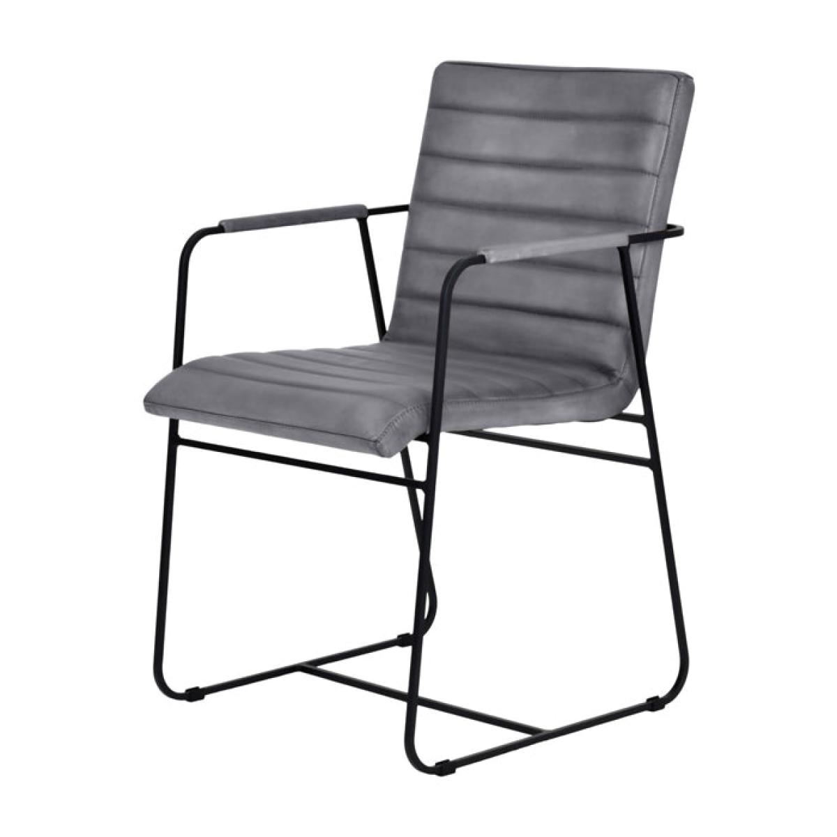 Imagine inviting guests into your dining room and being able to offer them a Libra Belton Leather Concrete Dining Chair to sit in. The metallic legs are thin but strong, adding lightness and a touch of elegance. The arms ensure you feel comfortable and safe within. The seat itself, flowing into the back, is of leather, the perfect material for class and sophistication, but also soft enough to relax. The concrete is a stylish colour, and the matt texture just gives it a little extra character, as does the visually interesting ridge pattern on the back. Measuring 83cm x 51cm x 60cm. Dimensions: H: 83 x W: 51 x D: 60 cm Materials: Leather