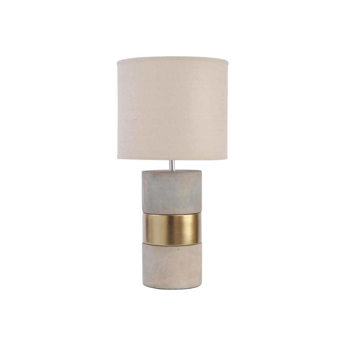 Illuminate your space with this lovely Libra concrete and gold table lamp. Featuring a cool natural shade, this delightful multi-toned piece is perfect for those who appreciate fine interiors and it will not go unnoticed by visitors to your home. With dimensions of 30cm in diameter and 62.5cm high, this Libra concrete and gold table lamp is equally suited to a contemporary home with open-plan living space as to a separate lounge. Whether you are looking for mood, task or general lighting, you can stage this lamp on a corner console to create a relaxing ambience for an evening at home with your family. Dimensions: W: 30 x D: 30 x H: 62.5 cm Materials: 50% Porcelain, 20% Concrete, 20% Linen Assembly Required: No Care Instructions: Dust with a clean, lint free cloth Bulb Type: Requires 1 x E27 Max 6W - Not included