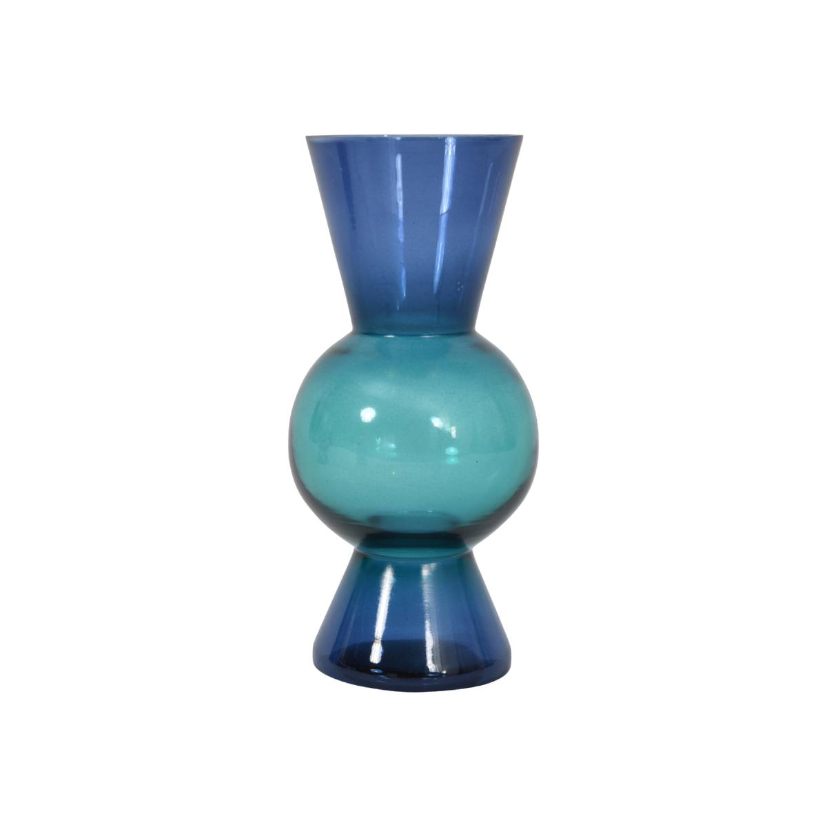 Add a splash of style and colour to your home with this stunning Elise vase from Libra. This lovely glass vase, in different shades of blue, is perfect to put on a window ledge where the sunlight will pick up the colours. The vase is a lovely ornament without flowers, but you can add fresh or silk blooms to the vase to create a beautiful display. The vase has a darker blue rim and base and, in the centre, a round bulb of a lighter blue. The vase measures 25cm high, 12cm wide and 12cm deep, perfect for a small bunch of flowers. Dimensions: H: 25 x W: 12 x D: 12 cm Materials: Glass Assembly Required: No. Notes: Clean with warm soapy water. Not suitable for dishwashers