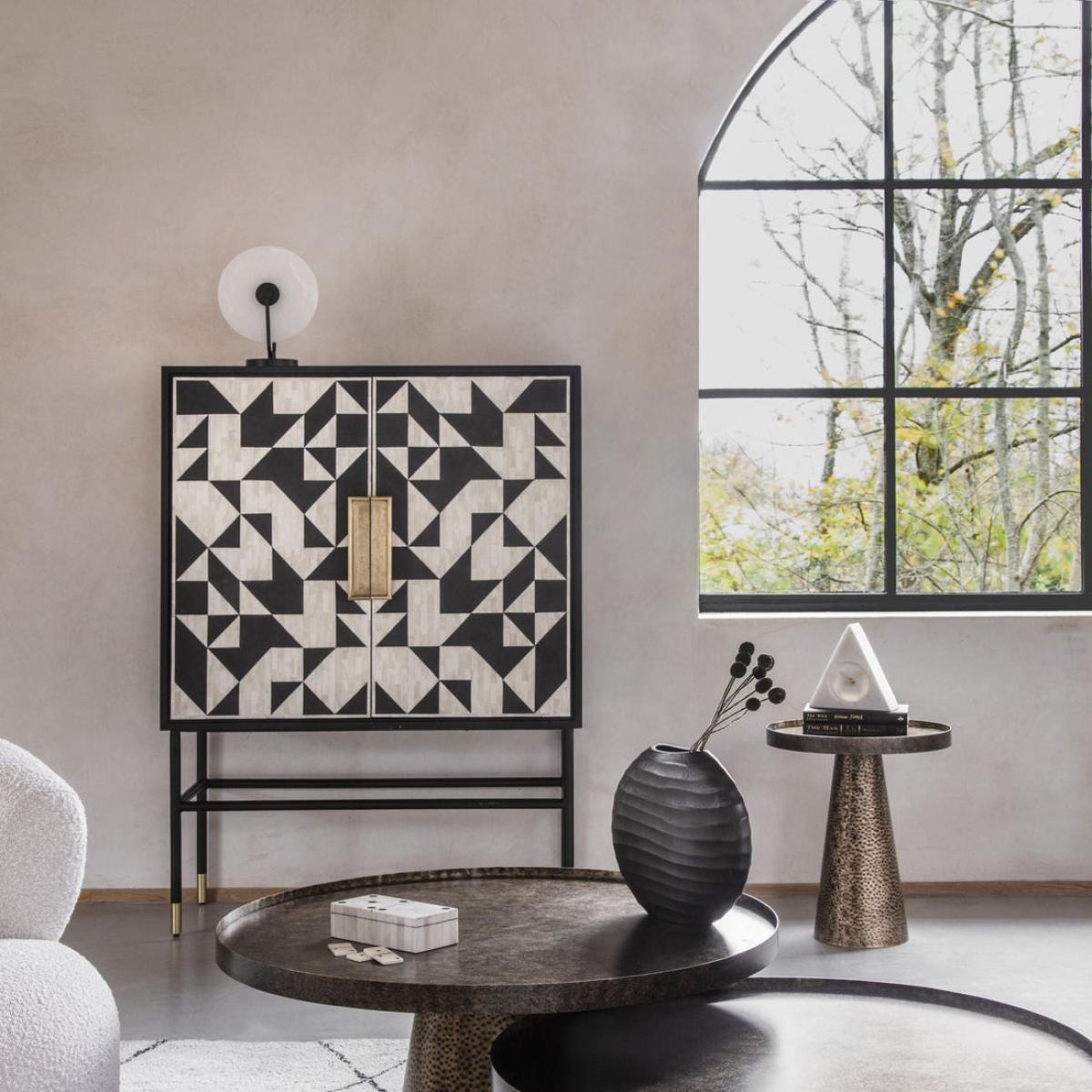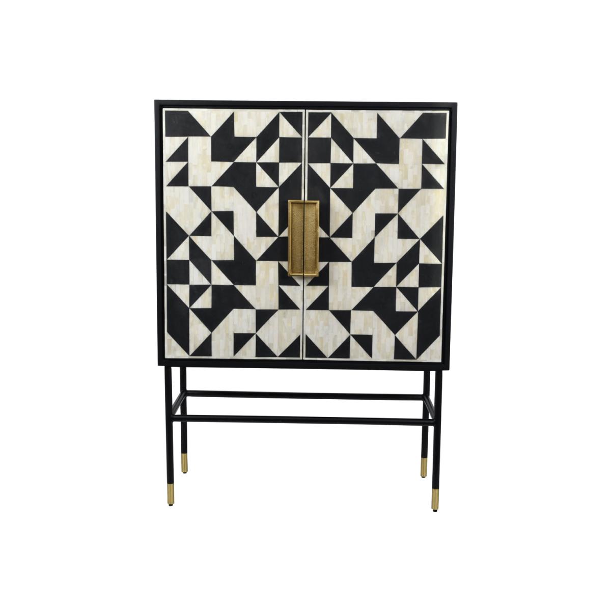 Elevate your entertaining space with the stunning Wolseley drinks cabinet from Libra. The attention-grabbing geometric design gives a nod to vintage design, while the sleek silhouette gives the piece a freshness that will also suit an array of contemporary interior styles. The antique gold-toned accent handles are reflected in open-structured metal legs, bringing a sense of cohesion to the piece. The ivory and black colour palette is effortlessly elegant and supremely timeless, offering a unique longevity and versatility that is often hard to find in contemporary furniture design. Plus, at 140x100x40cm there is plenty of internal space to house all your entertaining essentials. Dimensions: H: 140 x W: 100 x D: 40 cm Materials: MDF, Metal Assembly Required:Yes. Notes:Wipe with a clean dry cloth
