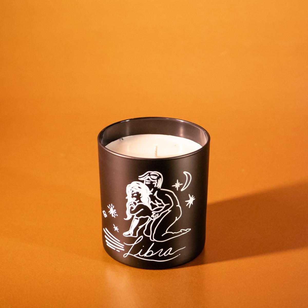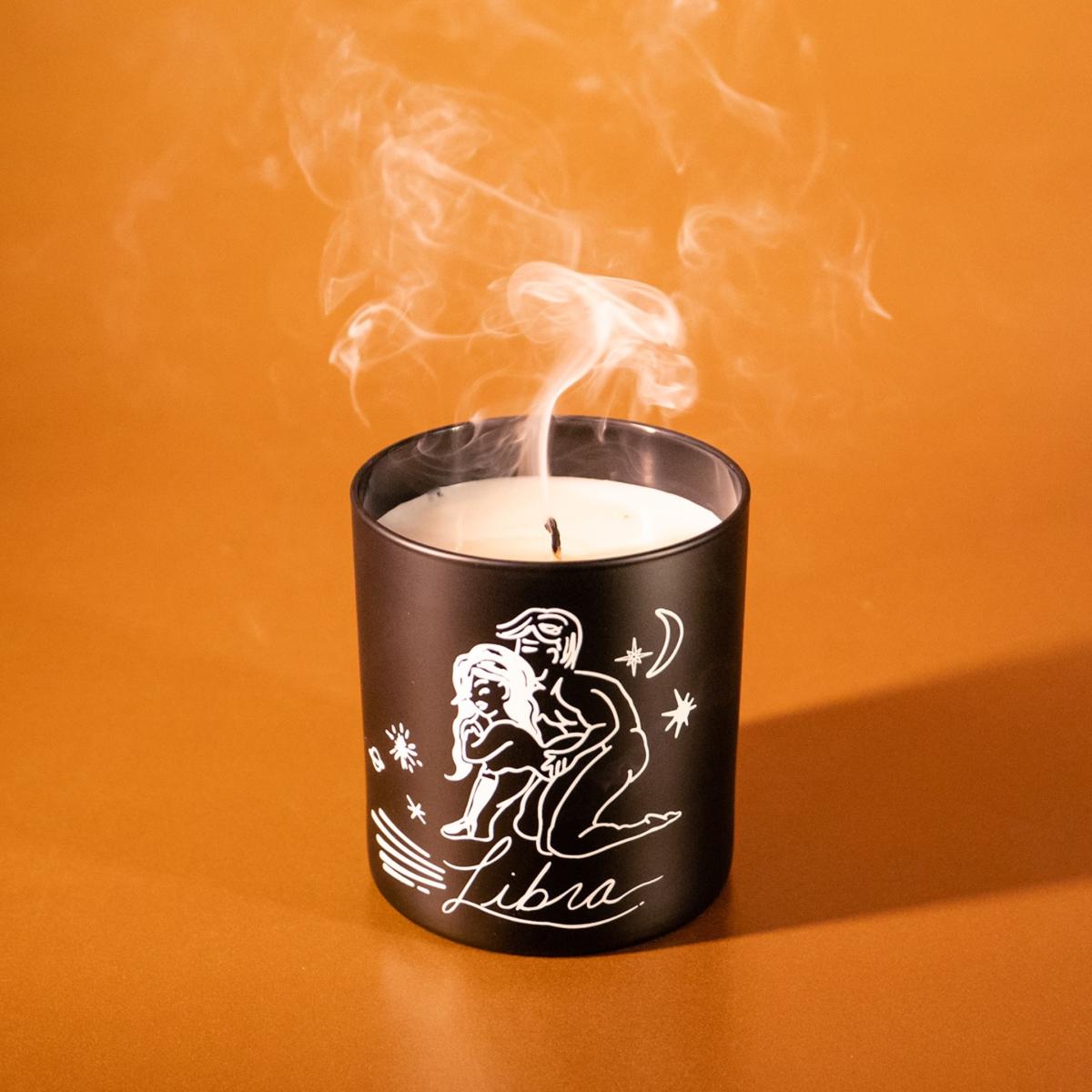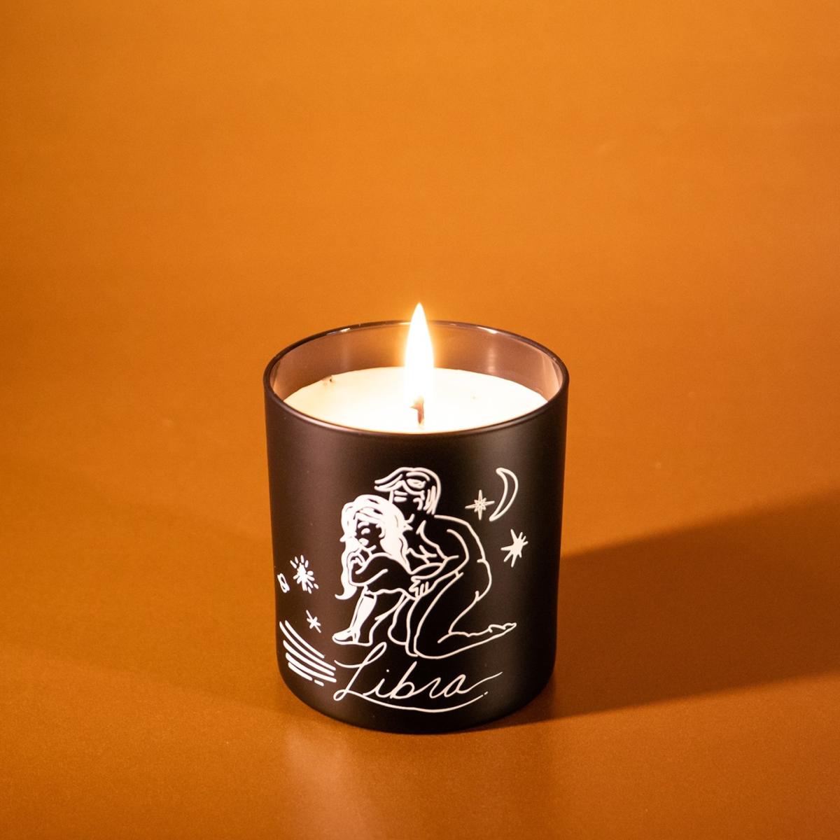 Black Cake's Zodiac Sex Massage Candles are a combination of coconut and soy wax, natural oils, and romantic notes poured into a beautifully hand illustrated glass cylinder that radiates sensuality and epitomizes seductive elegance. Erika hand drew the illustrations that adorn each sexy massage wax candle making her candles an original piece of artwork. Each Zodiac Sex Massage Candle reveals a sex position that fits your astrological sign's unique sexy personality. Hand poured in Los Angeles, California USA \