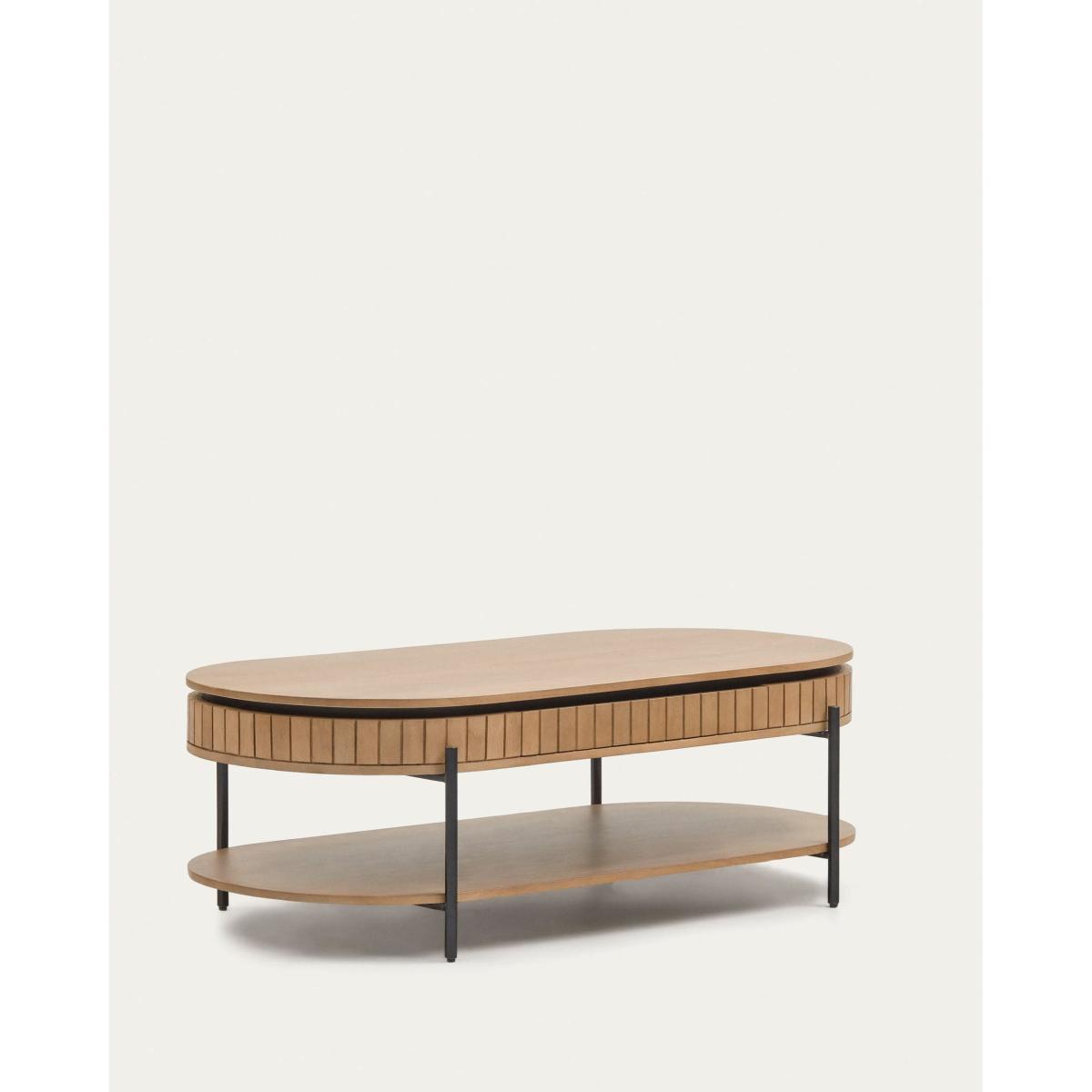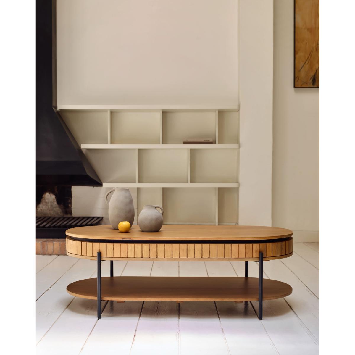 Licia mango wood coffee table with 1 drawer, with a natural finish and metal, 130 x 65 cm
