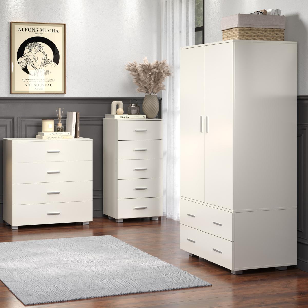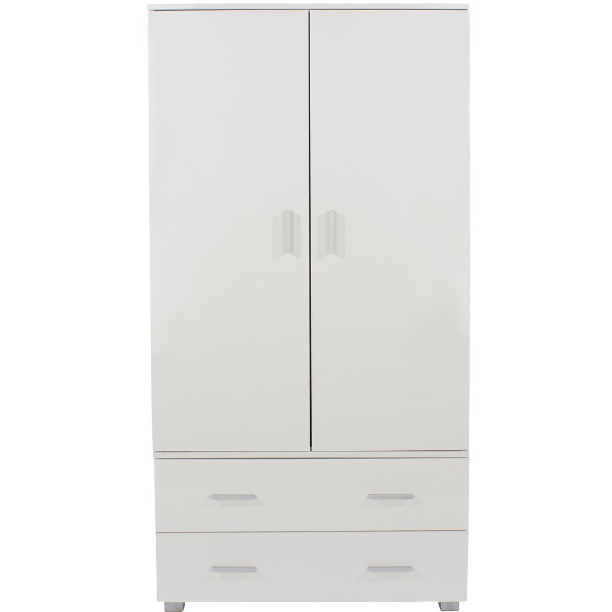 Our Lido range features a smooth high gloss white film finish which is stylish and on trend. The hardwearing finish is easy to clean and keep looking good. Matt silver effect handles and feet complete the look whilst the easy glide metal drawer runners make this ideal for everyday use. The generous size of this wardrobe ensures it provides plenty of practical storage for all your needs. It has 2 full width useful drawers on easy glide metal runners, and is finished with a bright white smooth interior to protect delicate items. The white glossy exterior will lighten any room.