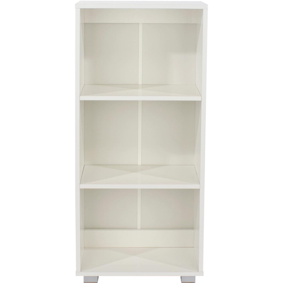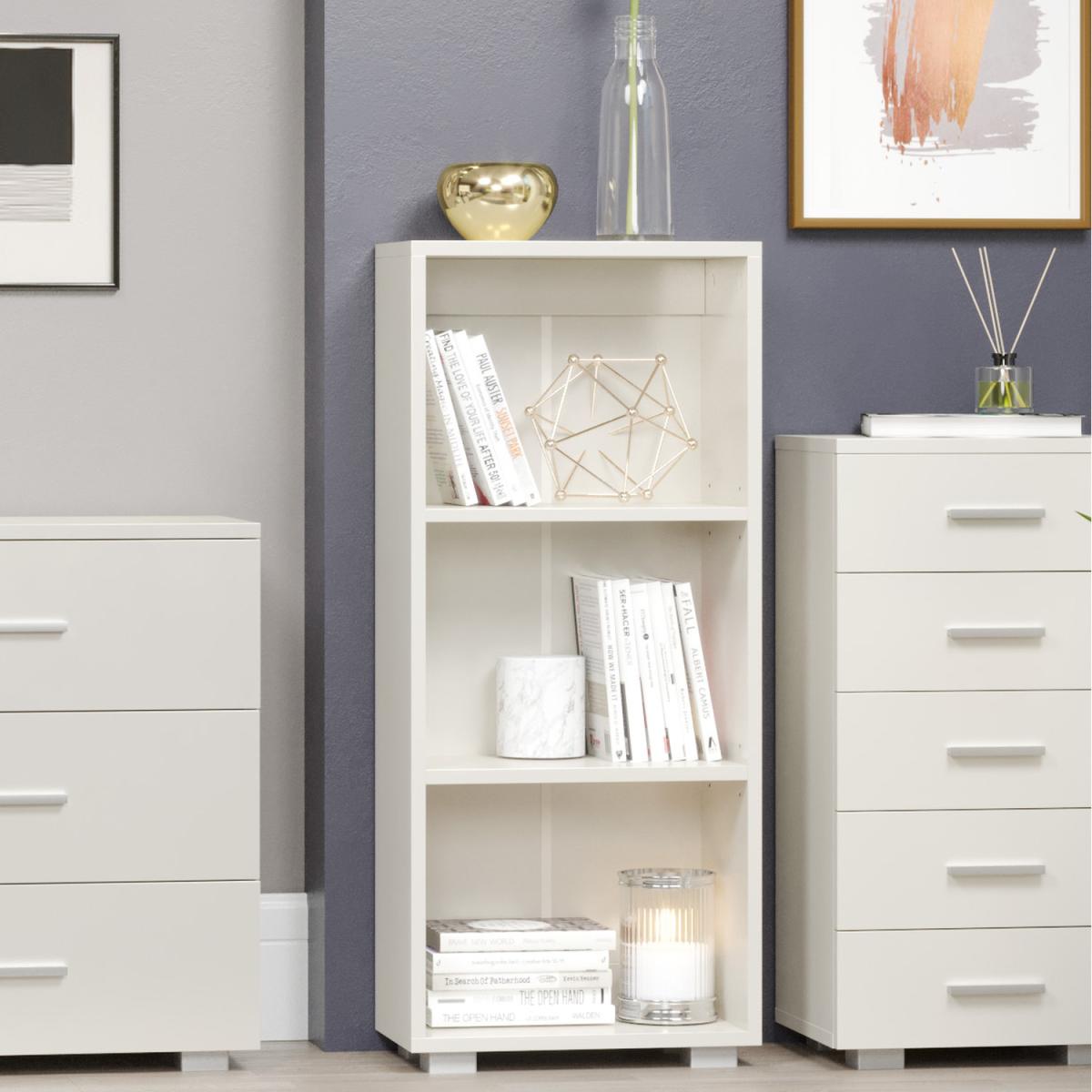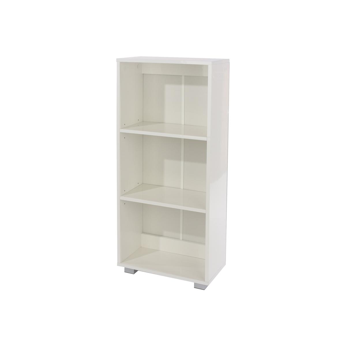 Our Lido range features a smooth high gloss white film finish which is stylish and on trend. The hardwearing finish is easy to clean and keep looking good. Matt silver effect feet complete the modern look. This low narrow bookcase is perfect where you need a compact storage solution. Each shelf is adjustable into pre drilled shelf positions for your convenience.