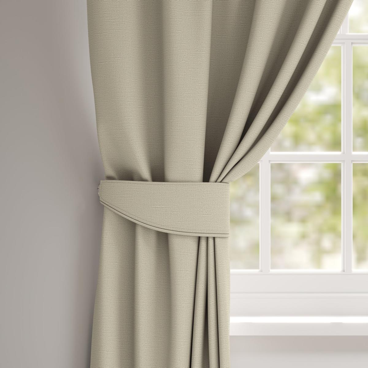 The Lienna Tieback, crafted from a luxurious blend of cotton, linen, and viscose, offer a perfect blend of style and durability. Available in a selection of elegant and calming colourways, this tieback is ideal for adding a touch of refinement to your home. Choose between a plain or piped edge to complement your curtains and overall décor. Designed to enhance any room with a sophisticated yet welcoming atmosphere, this tieback provides that extra special finishing touch to your custom-made window treatments. Need some support with your Made to Measure curtains? Feel free to book an appointment with one of our experts.