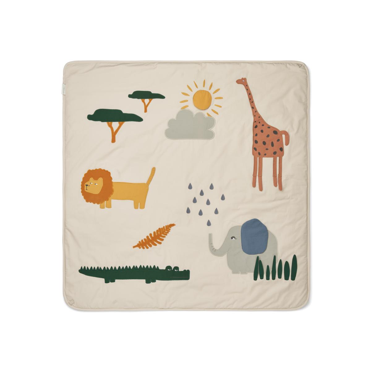 The Glenn blanket 110x110 cm from Liewood is made of organic cotton and recycled polyester. This cotton activity blanket is decorated with colourful animals and varied textures that stimulate the child's senses. Perfect for tummy time, play sessions, and daily exploration.