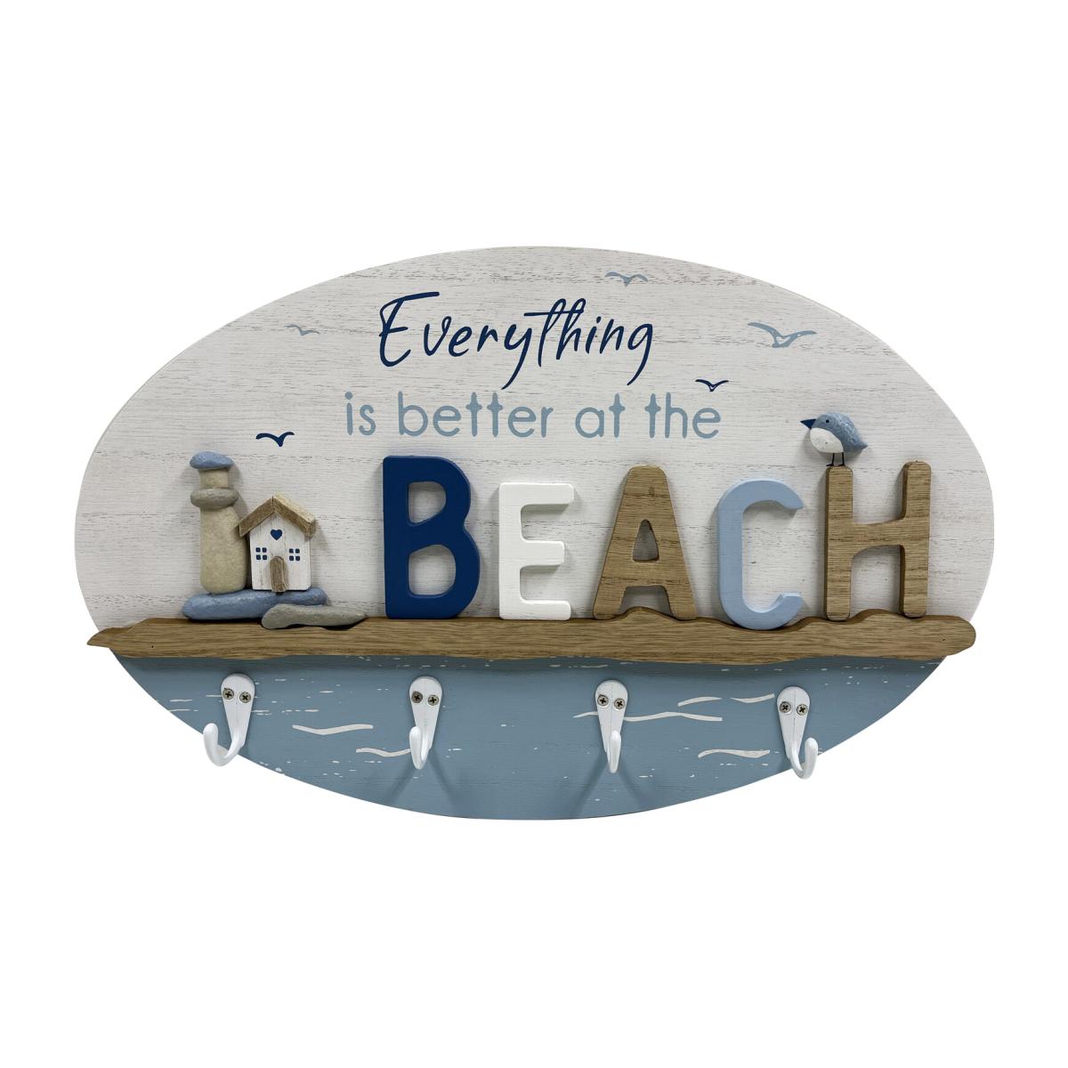 The Life Is Better At The Beach Hook Plaque is practical and stylish - ideal for any home. The beach inspires the plaque and features a rustic wood effect accented with a beach house and lighthouse. The plaque is finished with four hooks that can be used to hang your coats, jackets, bags, and accessories. The plaque is easy to hang and will look beautiful in any room.