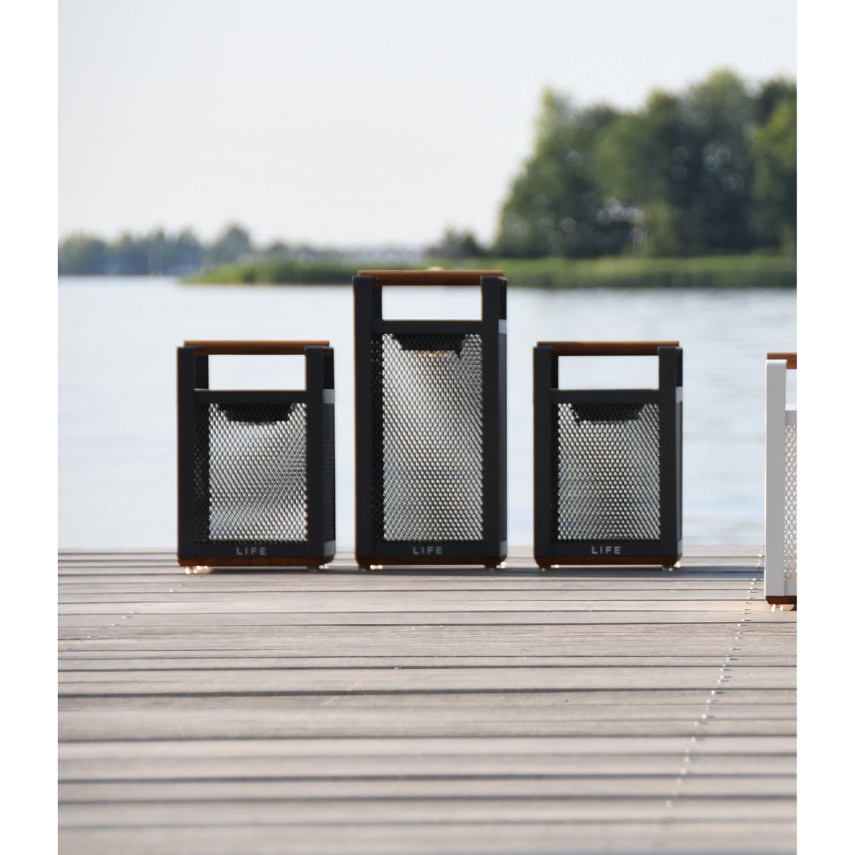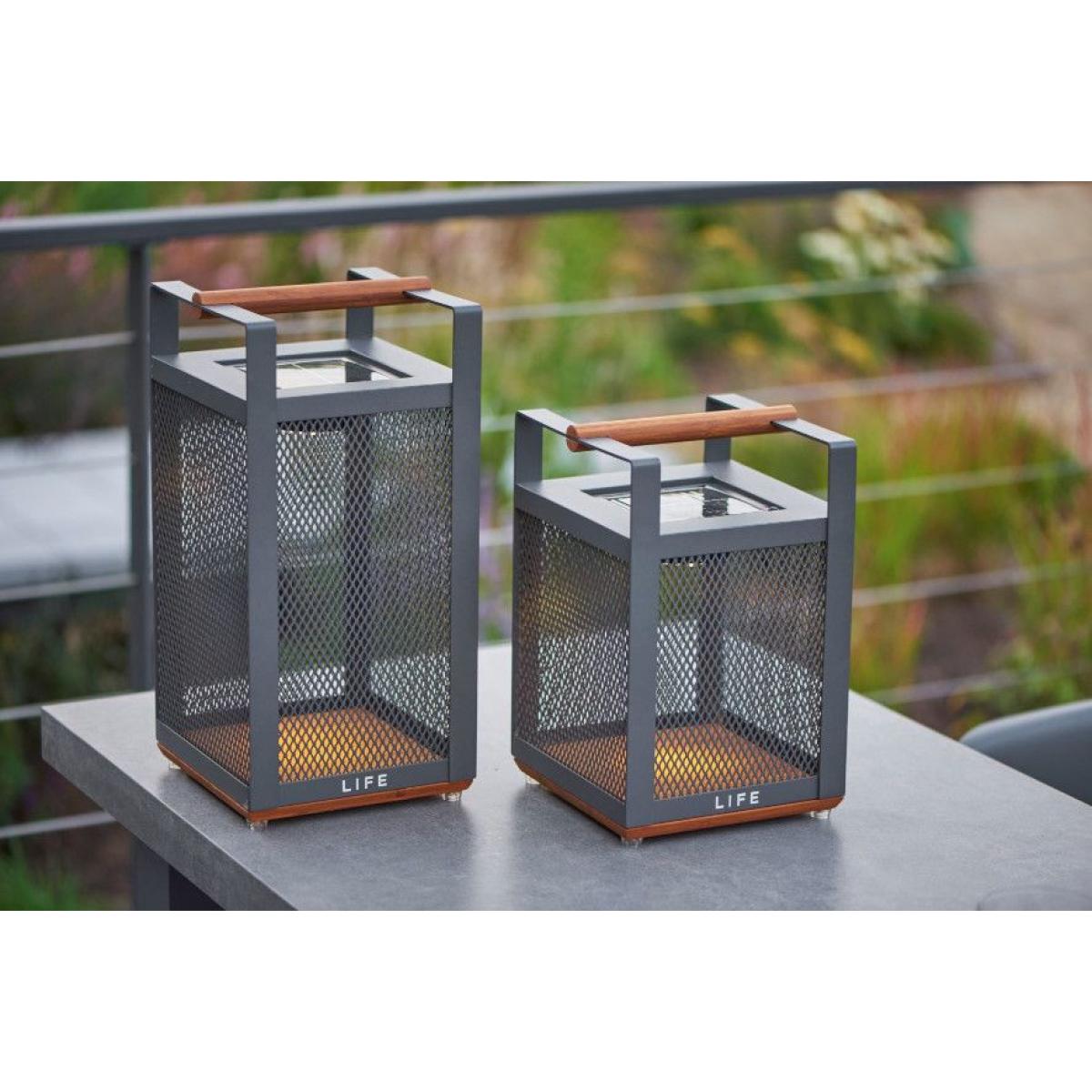 Enjoy the Shine High lamp with LED lighting from Life. The lantern is water splash resistant (IPX4 certified) and can be charged using the solar panel. In a contemporary Lava aluminium finish, this will look great in your garden when entertaining in the evenings. Dimensions: Width 21cm x Depth 21cm x Height 43 cm Sold Individually