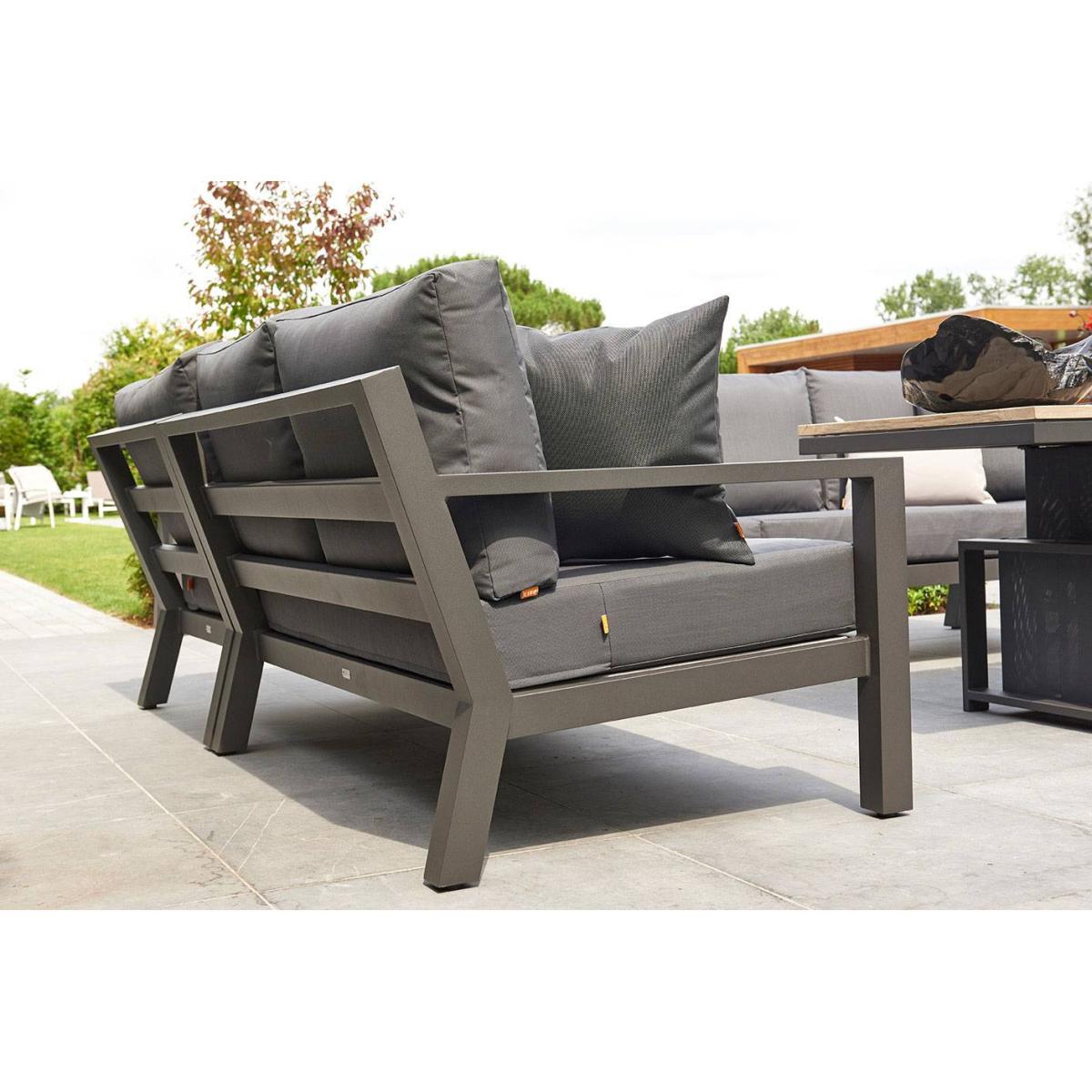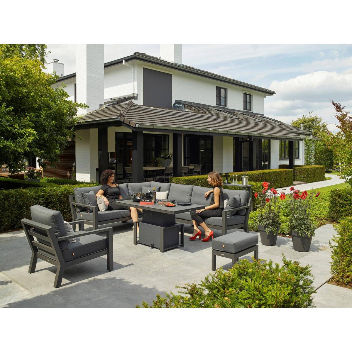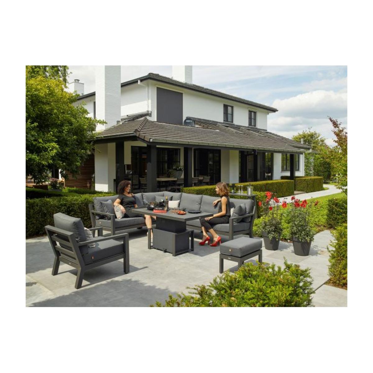 The LIFE Timber Corner Set is one of our all-time favourite pieces of garden furniture. The set includes a left-hand open bench, a right-hand corner bench, an extension piece (which can go on either the left- or right-hand side), a corner piece, one armchair and a half poof. Perfect for dining is the height adjustable table with a black spraystone top. When the meal is finished, the table can be lowered for drinks and nibbles. The frame is aluminium in a lava colour finished perfectly with carbon coloured all weather cushions. The great thing about LIFE cushions is their All-Weather technology. This is a cushion that can be left outdoors throughout the entire season. The cushions are produced from high-quality synthetic products; when it rains the water goes through the cushion cover and into the inner cushion. By pressing down on the cushion or placing the cushions on their sides, the cushions will be dry in a relatively short period of time. Recommended maintenance products: LIFE Outdoor Living Aluminium Cleaner & Protector, Spraystone Cleaner, Spraystone Protector & Textilene Cleaner. With an overall footprint of 3.9 x 2.2m and a generous high back seat which is 90cm high there’s room for your friends and family to enjoy a meal together. Open Bench Left Dimensions - L 132cm x D 90cm x H 90cm Open Bench Right Dimensions: L 132cm x D 90cm x H 90cm Extension section Dimensions: L 63cm x D 90cm x H 90cm Corner Section Dimensions: L 90cm x D 90cm x H 90cm Spraystone Adjustable Table Dimensions: L 140cm x D 75cm x H 48/74cm Corner Footprint L 225cm x D 285cm x H 90cm Armchair Dimensions: L 75cm x D 90cm x H 90cm Half Poof Dimensions: L 69cm x D 35cm x H 40cm Minimal home assembly is required. LIFE furniture leads the market in both concept and distinction with the confidence of a 5 Year Limited Warranty. Please note scatter cushions and accessories are not included.