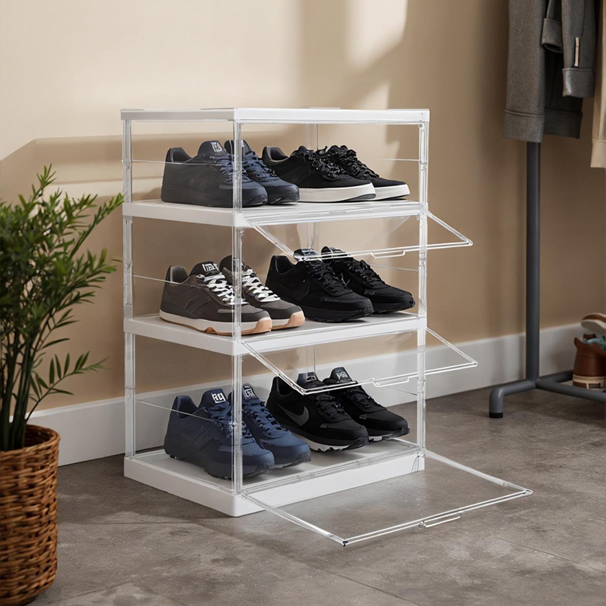 I love this foldable plastic box for its practical yet sleek design, making it perfect for a variety of interiors - from modern to minimal styles. Its clean white finish and transparent sides make it easy to see what's inside, ideal for organising shoes, accessories, or linens without cluttering the space. Its size and foldable feature make it versatile, especially in bedrooms, hallway storage, or even in kids’ rooms for tidy, accessible storage. To style it effectively, consider pairing it with matching baskets or organising trays for colour coordination, and keep it in accessible spots for everyday use. It’s a smart choice for maintaining a tidy look while adding functional organisation.