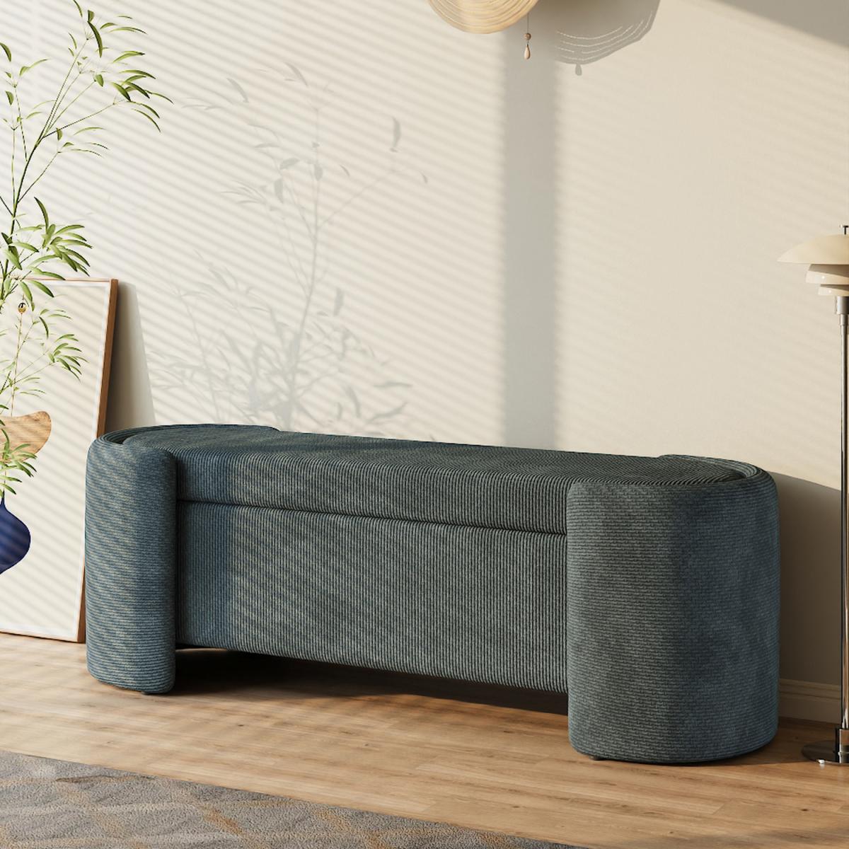 Discover the elegant design of this Oval Upholstered Storage Bench. Its high-density sponge ensures a firm yet comfortable seat for lasting support. The seat lifts effortlessly to reveal handy storage space beneath. A sturdy base raises the bench for easy cleaning and maintenance. Perfect for adding style and function to any room.