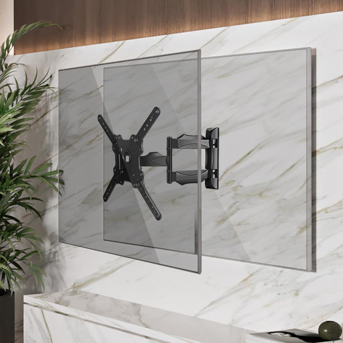 Elevate your viewing experience with this wall-mounted TV bracket, designed for flexibility and stability. It lets you tilt the TV up and down and swivel it left and right, so you can find the perfect angle from anywhere in the room. The adjustable arms let you set the distance from the wall, adapting to different spaces and ensuring an ideal viewing range. Plastic covers hide mounting holes, keeping the look neat and dust-free. With a capacity to support up to 31.5kg and a large contact area, it offers reliable sturdiness--perfect for securing your home entertainment setup.
