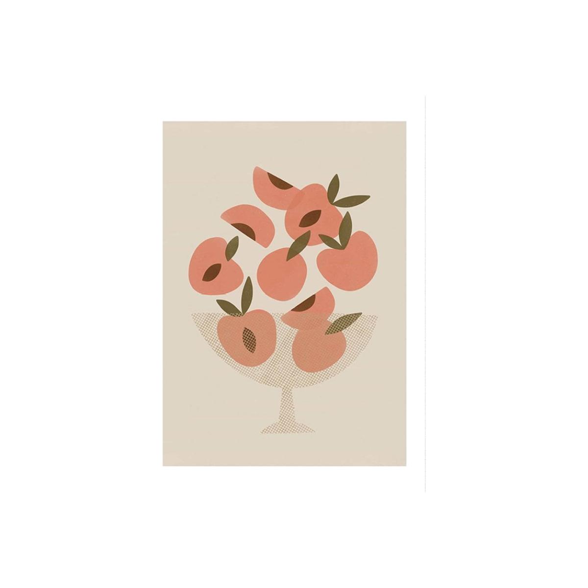'Life's A Peach' with this striking print. In a bold graphic style with a subtle colour palette of peach, taupe, and brown that will add instant life to your kitchen. Only giclée printing processes are used for this print resulting in the highest quality museum-level colours and sharpness. Choose between a number of different coloured frames and three sizes for the perfect print for your space.