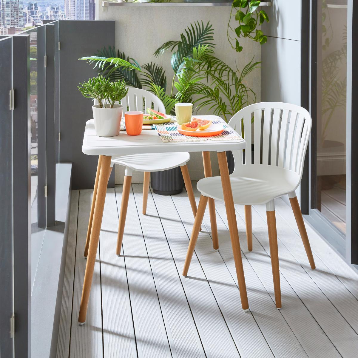 I love this garden bistro for its versatile, contemporary look that works equally well in outdoor and indoor spaces. Its sage colour adds a calm, neutral tone that pairs beautifully with a variety of colour schemes, from lush greenery to pastel or bold accents. The clean-lined design and natural wooden legs give it a modern yet relaxed vibe, perfect for creating a stylish alfresco dining area or a cosy breakfast nook. Practical styling tips include layering with colourful cushions or outdoor lanterns for added comfort and ambiance, and pairing it with minimalist planters or textured textiles to enhance its understated charm. This set is durable enough for outdoor use but also stylish enough to serve as an eye-catching feature inside or on a covered patio.