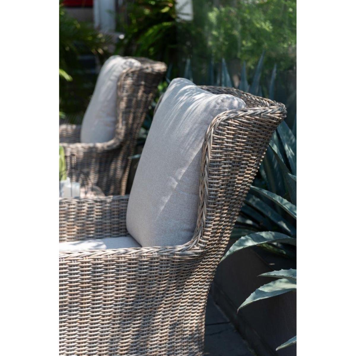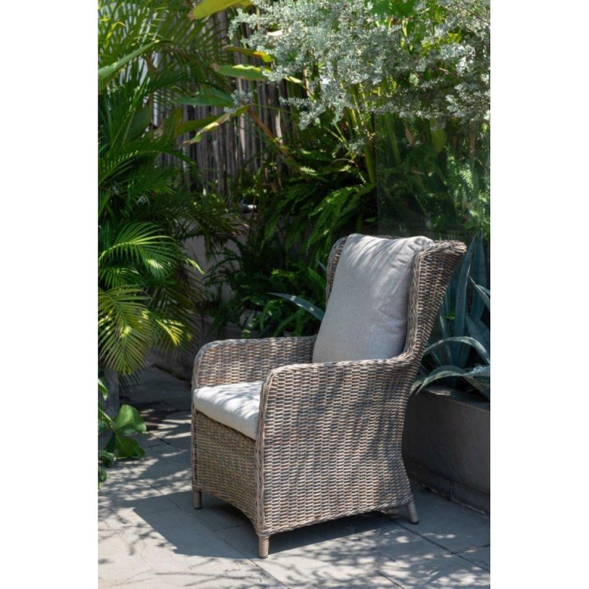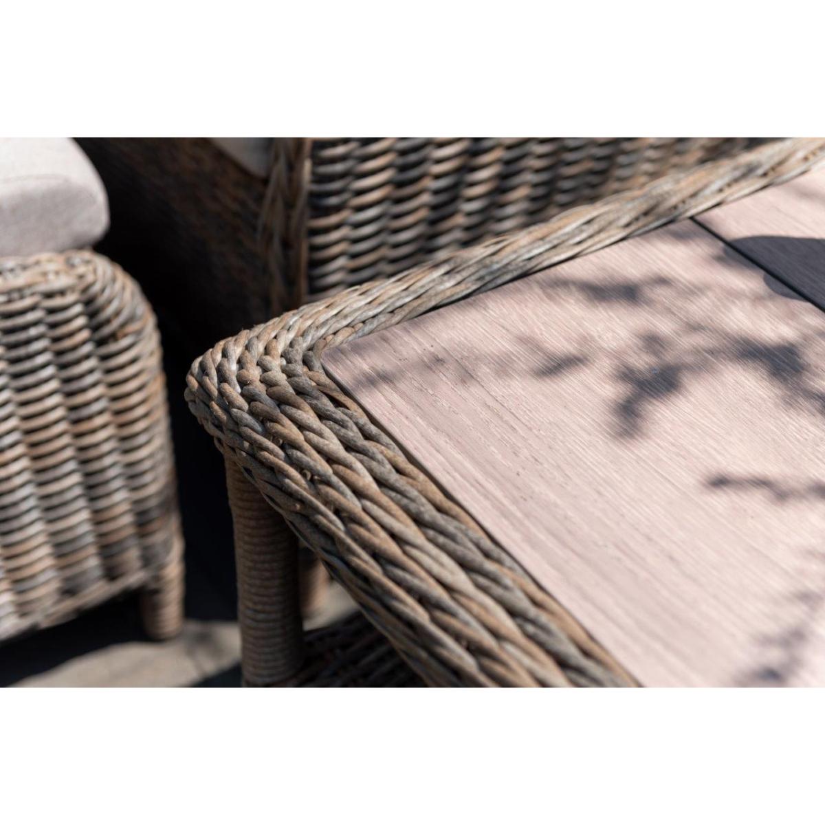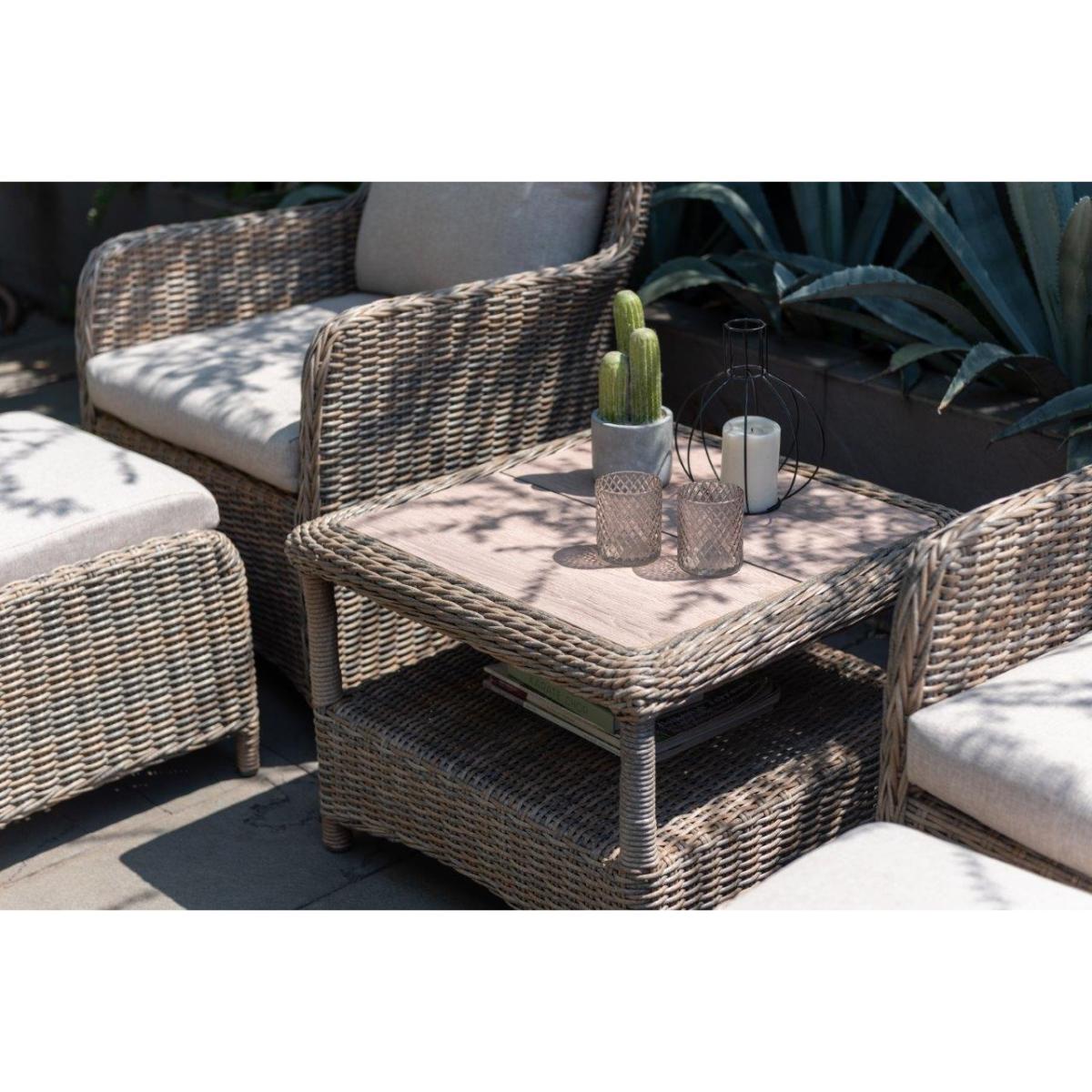 The Martinique Companion Set redefines outdoor relaxation with its blend of luxury and functionality. The deluxe chairs feature a laid-back seating position and integrated footrests, offering the perfect spot to unwind in style. Designed with a beautifully woven Petan frame in the sophisticated Woodsmoke colour and complemented by plush Olefin cushions, these chairs provide exceptional comfort and weather resistance. The matching Martinique Square Side Table completes the set, offering a stylish and practical surface with the same elegant Petan design. Ideal for any patio, this set creates a cohesive and inviting space for outdoor lounging. KEY FEATURES: Set includes: 2 x Martinique Carver Chairs, 2 x Martinique Ottoman's, 1 x Martinique Side Square Table Synthetic rattan weave UV and frost-resistant Can be left outside all year round (except cushions). Aluminium frames Easy to clean: clean with a non-abrasive sponge and detergent-free soapy cleanser and rinse thoroughly. We recommend storing the cushions in a dry, ventilated space when not in use. If storing cushions or fabric inside, allow to dry completely before storing. 5 year manufacturer's warranty DIMENSIONS: Martinique carver chair: Height: 94cm Width: 62cm Depth: 65cm Martinique Ottoman: Height: 44cm Width: 56cm Depth: 39cm Martinique Side Square Table: Height: 44cm Width: 60cm Depth: 60cm Please note, all screens vary in colour reproduction and whilst every effort has been made to display the colour as accurately as possible it is for guidance only. Scatter cushions and accessories pictured are for demonstration purposes only and are not included.