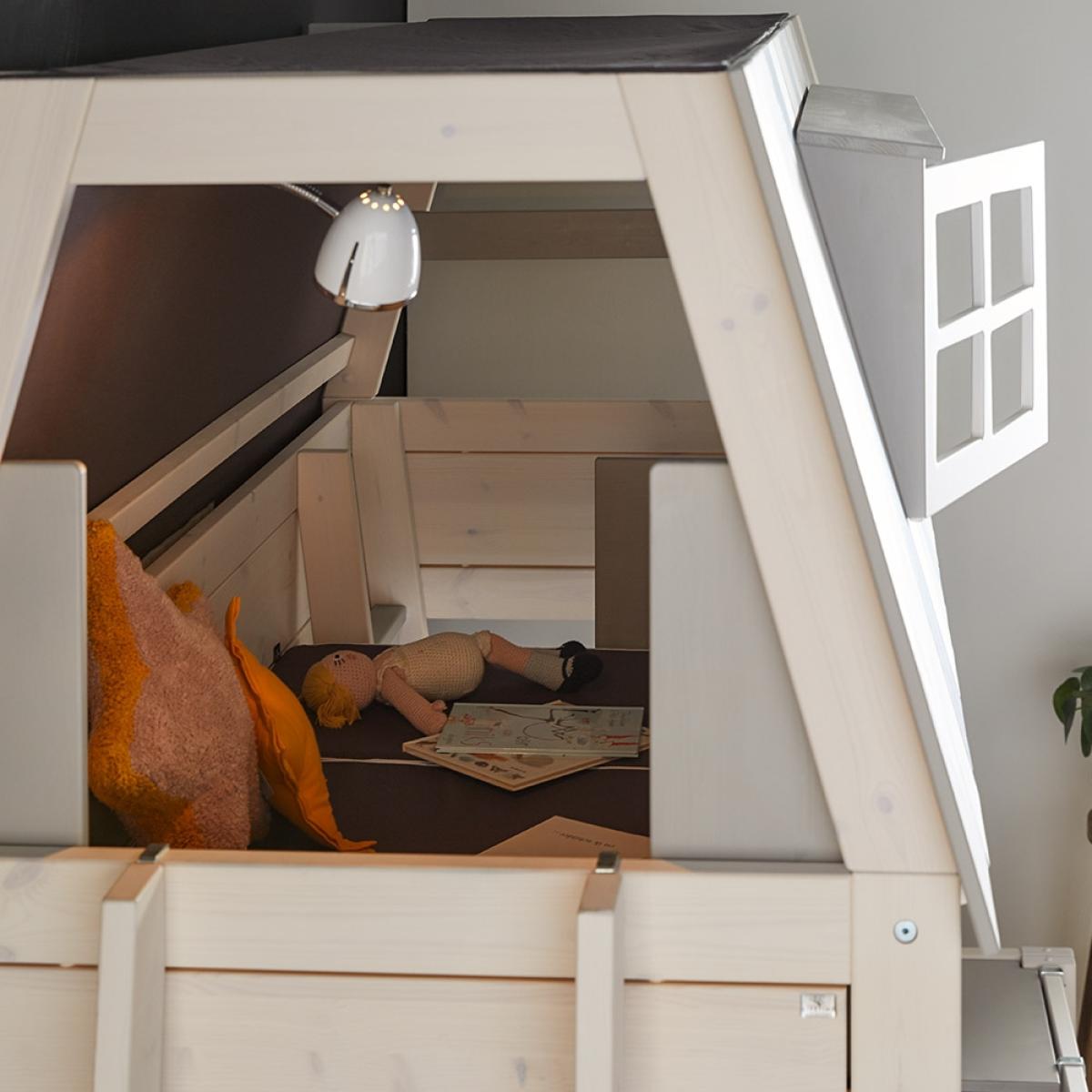 Earn some serious brownie points with the Adventure Hangout Small Double Bed from Lifetime. So much more than a bed, this fantastic piece of furniture is an entire home. Featuring opening windows and an internal ladder to get to the secret little den in the top bunk, your kiddies will have so much fun playing make-believe they'll wish it were bedtime sooner. You can even add an external ladder so your youngster will be able to choose how they get into their secret hideaway! Handcrafted in Denmark and manufactured from solid pine, this bed not only looks good but is a sturdy, high-quality product that will see your little one through childhood and beyond.