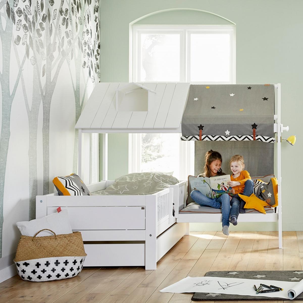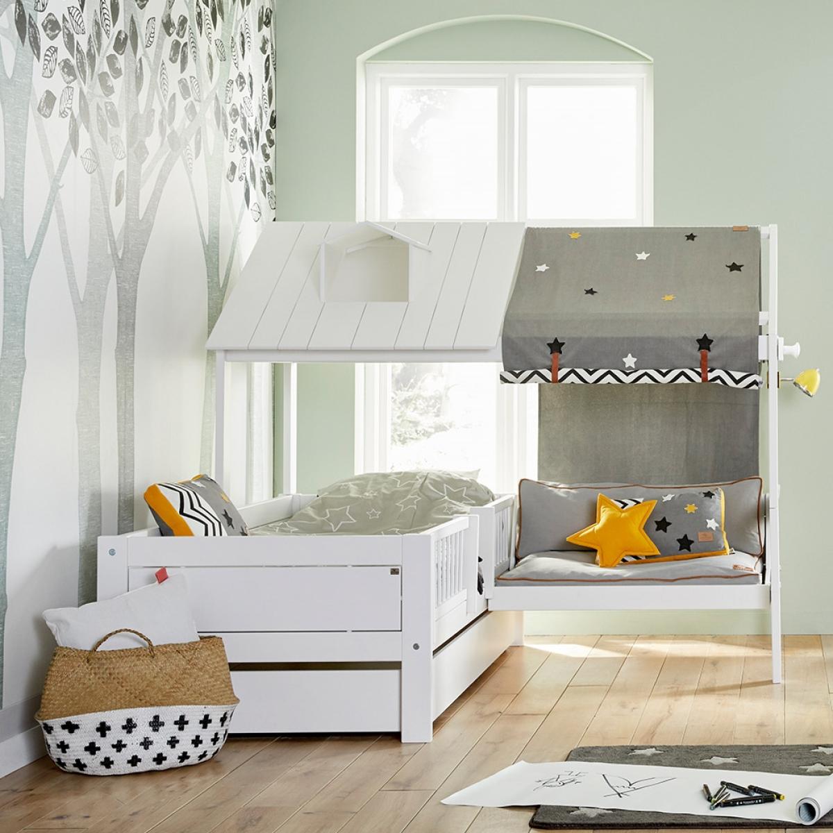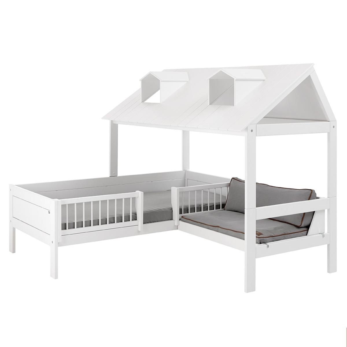 Bring the seaside to your littluns bedroom with the. Lifetime Corner Beach House Bed with Bench. From Lifetime. This stunning piece of furniture is sure to make a statement in any room and will certainly earn you some brownie points with your kiddie. They will love it! How could they not? Look at it! Handcrafted in Denmark and manufactured from solid pine, this bed not only looks good but is a sturdy, high-quality product that will see your little one through childhood and beyond. Not only can they sleep in this. Kids house bed. , with the added bench it's the perfect spot for some reading with mum or dad. You could even add the optional fabric roof to create the ultimate cosy den where your youngster can let their imaginations run wild!.