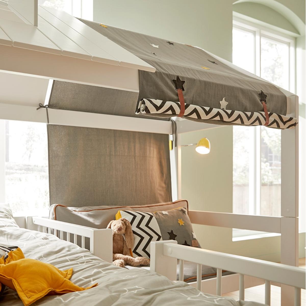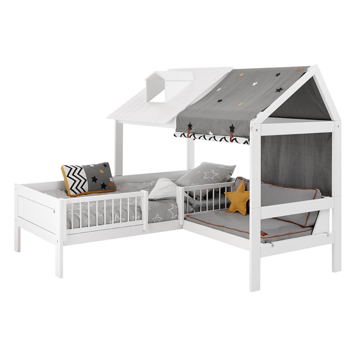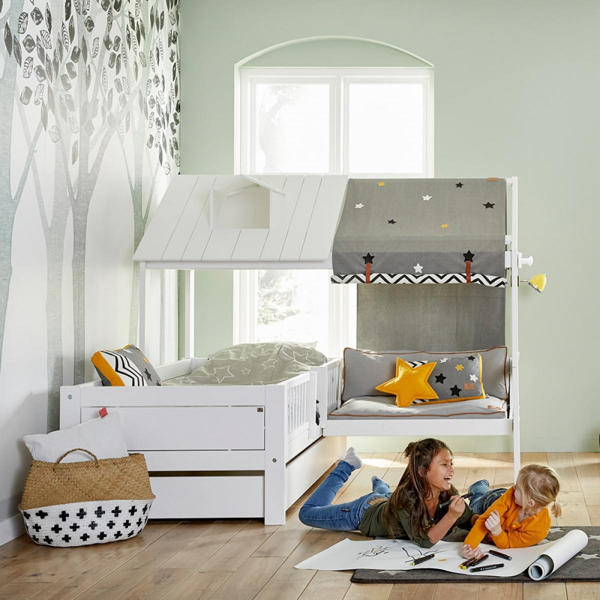 Bring the seaside to your littluns bedroom with the. Lifetime Corner Beach House Bed with Bench. From Lifetime. This stunning piece of furniture is sure to make a statement in any room and will certainly earn you some brownie points with your kiddie. They will love it! How could they not? Look at it! Handcrafted in Denmark and manufactured from solid pine, this bed not only looks good but is a sturdy, high-quality product that will see your little one through childhood and beyond. Not only can they sleep in this. Kids house bed. , with the added bench it's the perfect spot for some reading with mum or dad. You could even add the optional fabric roof to create the ultimate cosy den where your youngster can let their imaginations run wild!.