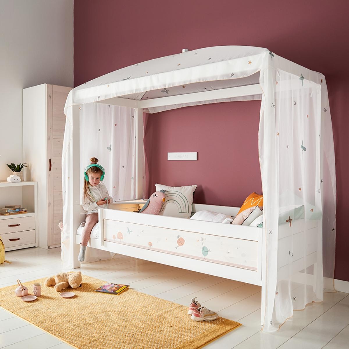 The Fairy Dust Four Poster Bed from Lifetime is a gorgeous bed that is sure to make your kiddie feel like a grown up! Bedtime will be an easy take knowing that this bed awaits them. Handcrafted in Denmark and manufactured from solid pine, not only does this bed look good but is one sturdy, high-quality piece of furniture that will see your youngster through childhood and beyond. The floor length canopy, with a butterfly and star design, will create the perfect sanctuary for your little one and when bedtime rolls around, will send them off on their dreamy adventures!.