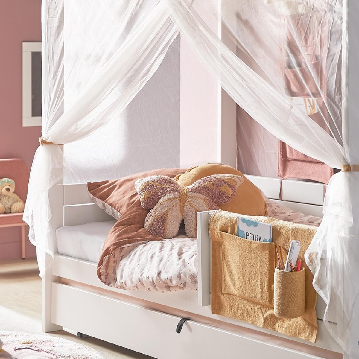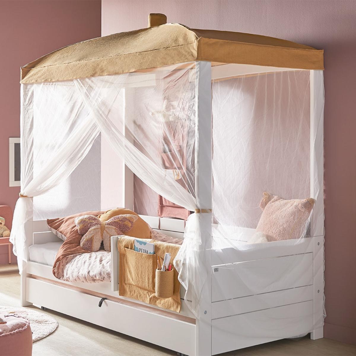 The Lifetime Honey Glow Four Poster Bed was made for your little ray of sunshine! The handcrafted and responsibly sourced wooden 4 poster bed frame, golden canopy and netted curtains are like something from a fairytale story! After a long day of exploring their kingdom, when they’re tucked under the covers and ready for bed, close the soft curtains and create a cosy nook for your sleeping beauty. Add a set of fairy lights to really make this bed glow! Completely personalise the Lifetime four poster with a name plate, shelves and storage and add the trundle drawer for slumber parties! Create a bed they’ll never forget!.
