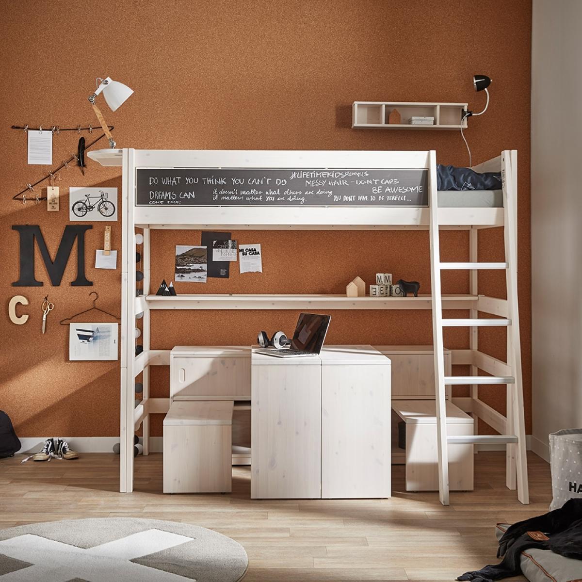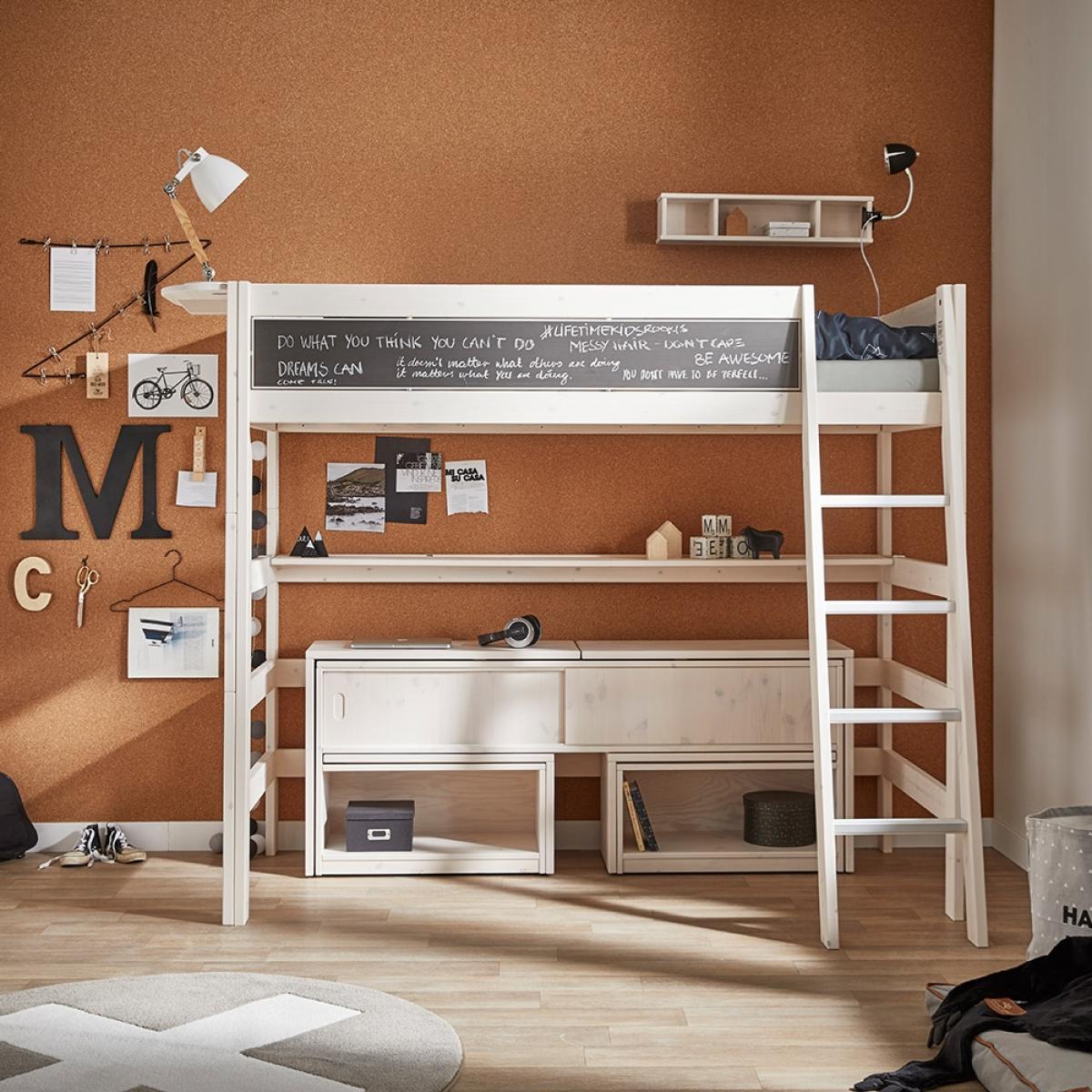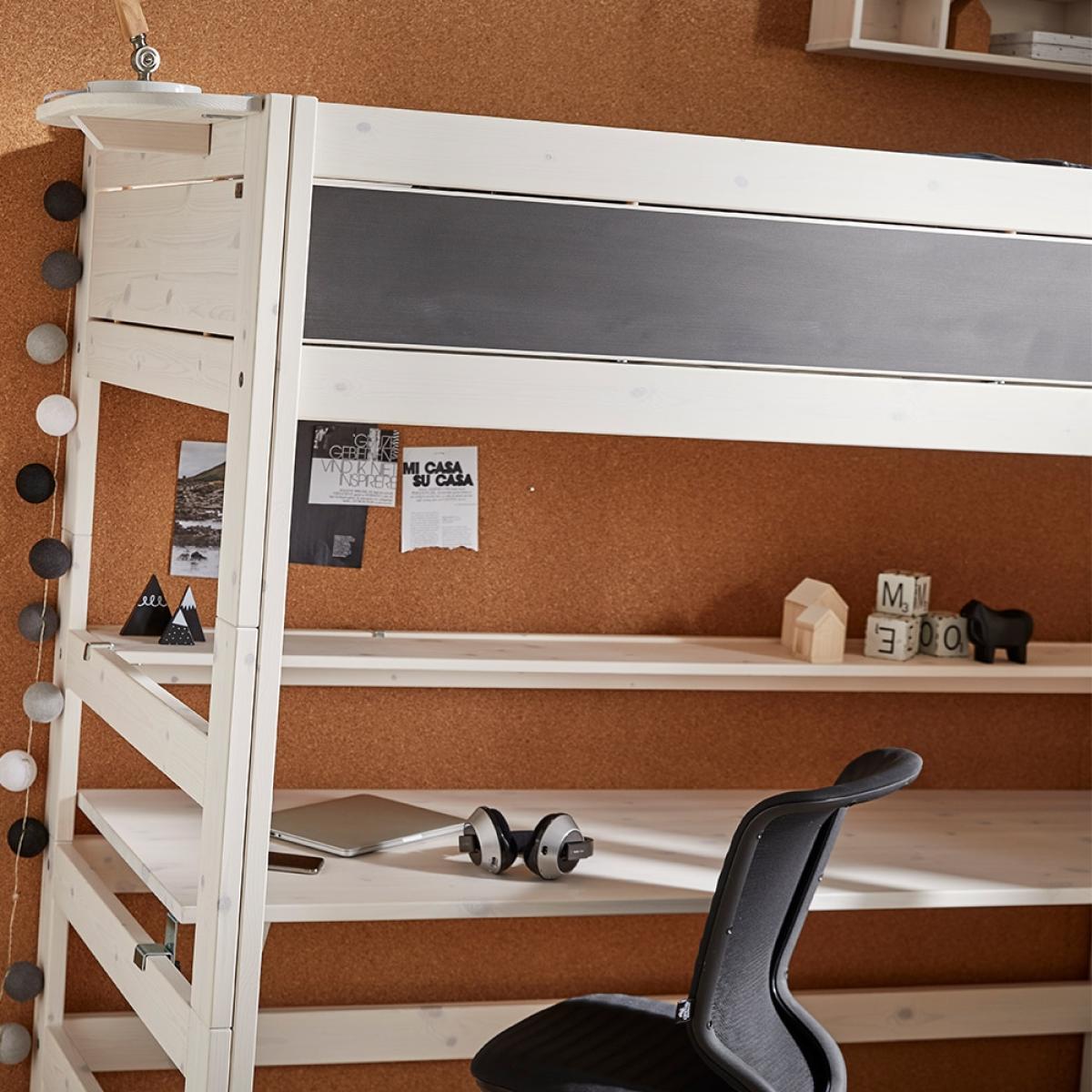 Short on space and want to get more from your kiddies bedroom? Well, the Kids High-Rise High Sleeper from Lifetime is what you've been looking for! Handcrafted in Denmark and manufactured from solid pine, with a chalkboard front panel your youngster can decorate it how they like! Drawing pictures, inspiring quotes or you could even write little messages. The large space beneath, whether you use it for extra storage space with a chest of drawers, a comfy area with beanbags or with the option to add a desk and shelf this loft bed could be the perfect study set up for when that dreaded homework needs to be done!.