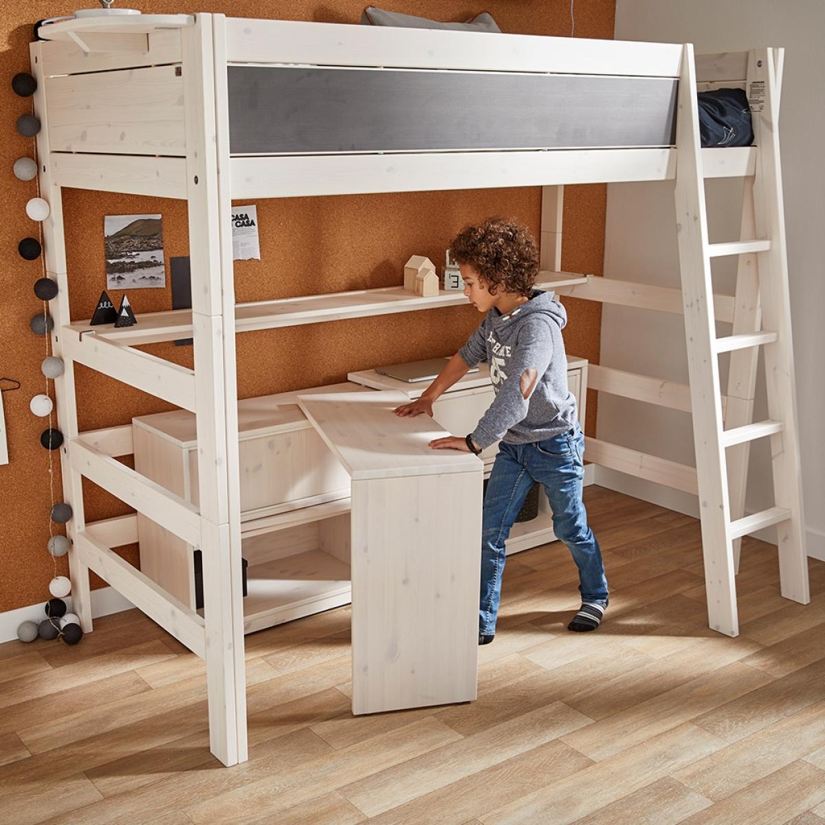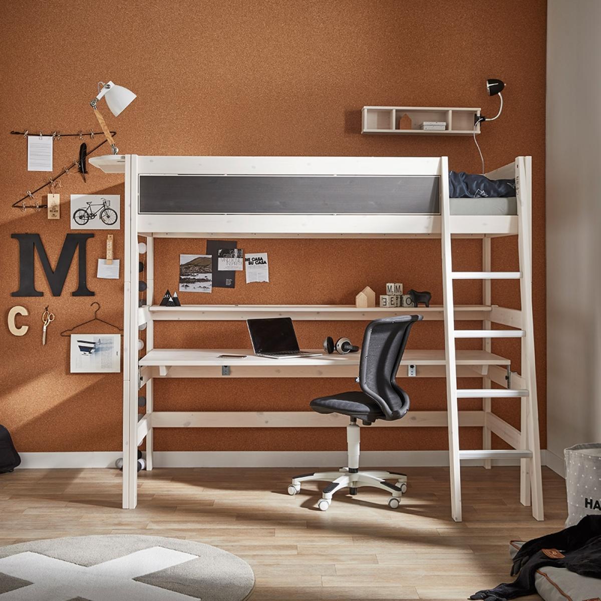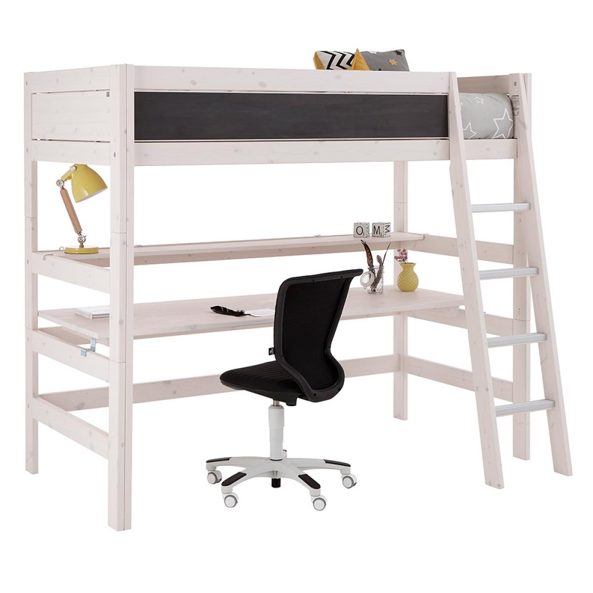 Short on space and want to get more from your kiddies bedroom? Well, the Kids High-Rise High Sleeper from Lifetime is what you've been looking for! Handcrafted in Denmark and manufactured from solid pine, with a chalkboard front panel your youngster can decorate it how they like! Drawing pictures, inspiring quotes or you could even write little messages. The large space beneath, whether you use it for extra storage space with a chest of drawers, a comfy area with beanbags or with the option to add a desk and shelf this loft bed could be the perfect study set up for when that dreaded homework needs to be done!.