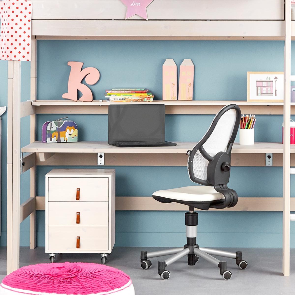 The Kids High-Rise Sleeper Bed is the answer to your prayers if you are short on space and want to get more from your child's bedroom! Handcrafted in Denmark and manufactured from the best solid pine this is one multifunctional piece of furniture. The area underneath the high rise bed can be used for whatever their little hearts desire whether it's extra storage space with a chest of drawers, a cosy area with beanbags and cushions or even a mattress for sleepovers - the list is endless! With the option to add a desk and shelf this high rise bed could also be the perfect study set up for when that dreaded homework needs to be done! Offering up somewhere to sleep, somewhere to relax and somewhere to do school work this loft bed will be a superb addition to any kiddies room.