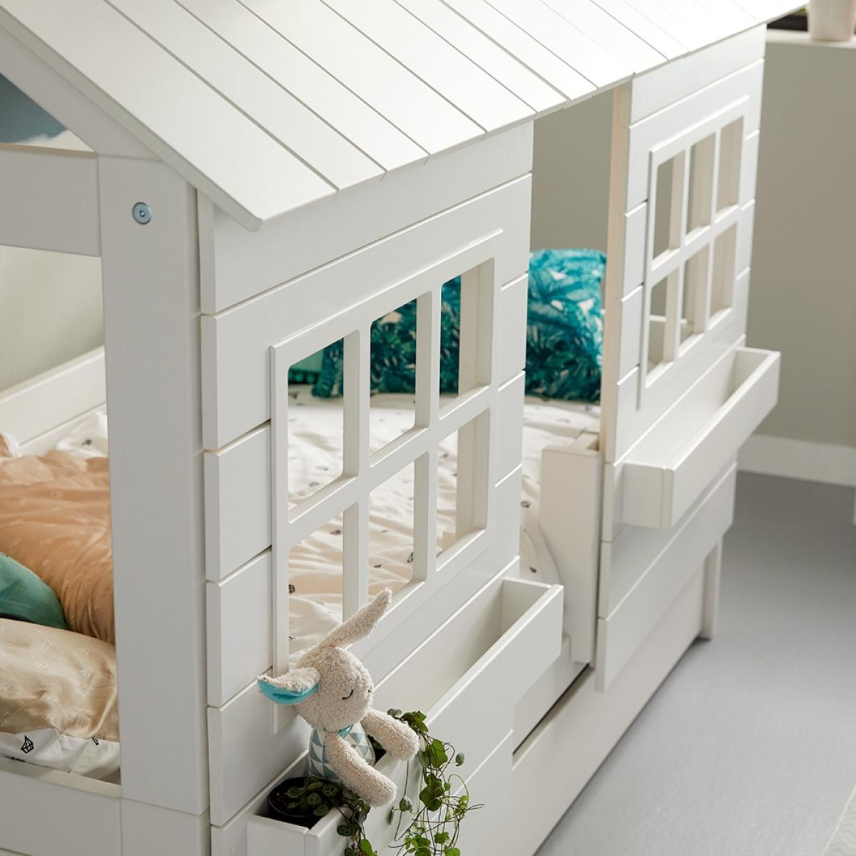 The Lake House 2 Kids Bed from Lifetime will be the perfect sanctuary for your kiddie and not just when bedtime rolls around. Complete with a roof featuring two cut out windows plus two front panels including two more windows, with hanging boxes underneath, this bed is sure to be your little ones home away from home! They can keep their favourite toys close by in the boxes and string up some fairy lights to create a cosy den. You will earn some serious brownie points with this amazing bed! Handcrafted in Denmark and manufactured from solid pine, this bed not only looks good but is a sturdy, high-quality product that will see your little one through childhood and beyond.