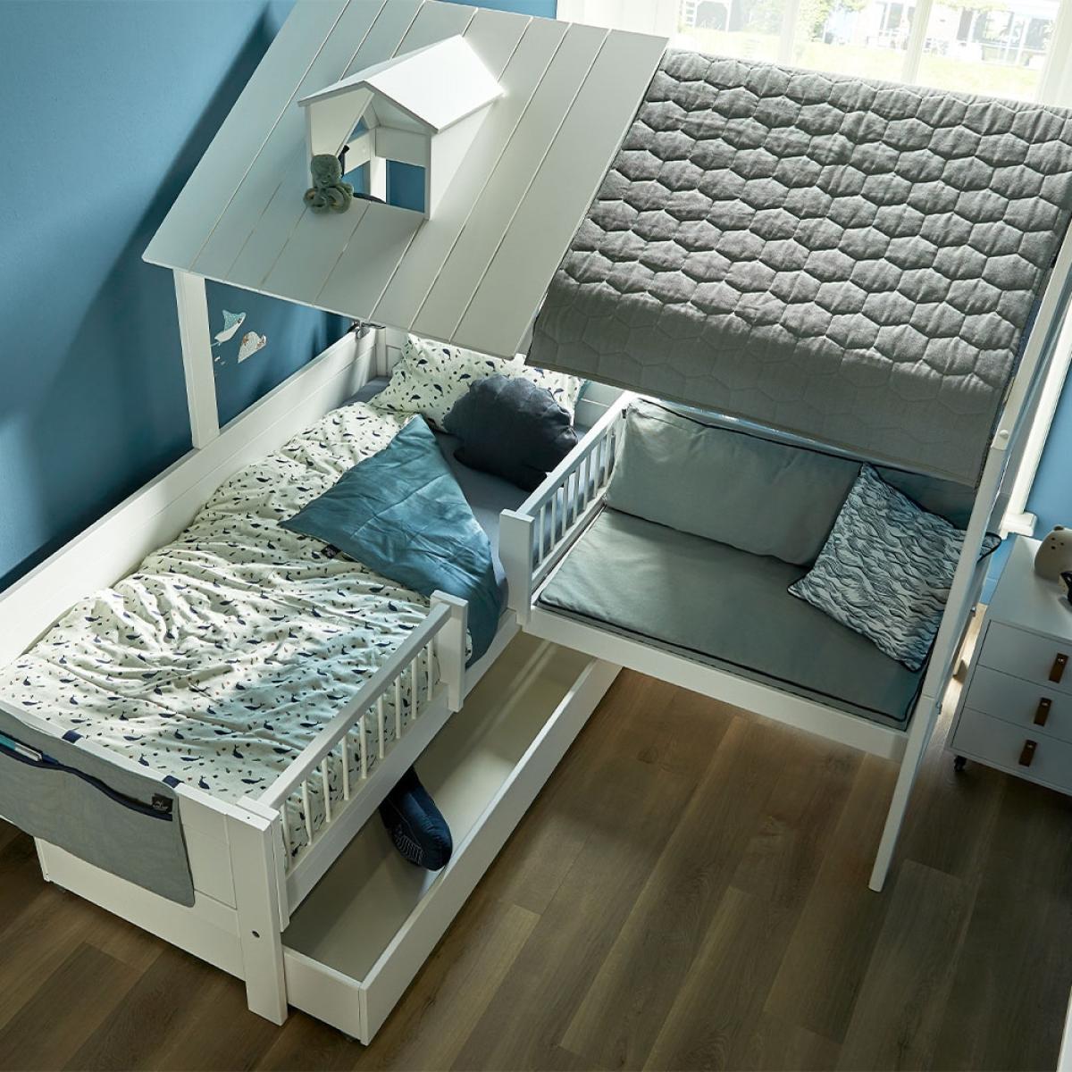 Your kiddies will ‘whaley’ love the Lifetime Luxury Ocean Life Beach House Corner Bed! The L shaped responsibly sourced wooden house bed has been designed to look just like a beach hut! I spy something blue - kiddies can gaze through the wooden canopy window and play peek-a-boo. Decorated with illustrated underwater animals, the quilted canopy creates a cosy nook for reading and relaxing on the cushioned bench. It’s the perfect spot for bedtime stories and snuggles. And when they’ve floated off to sleep, they’ll be dreaming of sailing the sea and riding the waves with their favourite aquatic creatures. If you thought this bed couldn’t be anymore incredible, wait for it… splash out on the extra accessories, personalised name plate and matching furniture to completely transform their bedroom!.