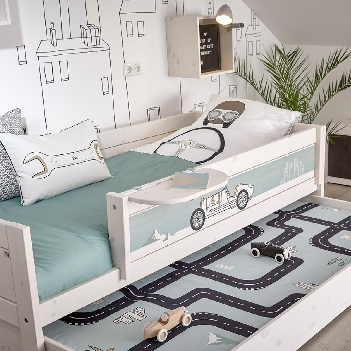 A wonderful bed for any budding race car driver, the Road Race Kids Bed from Lifetime will be a superb addition. Handcrafted in Denmark and manufactured from solid pine, with a car design on the front panel, your kiddie is sure to love it. In a choice of three neutral colours, it will see your youngster through their teenage years and the simple style will make the move from kid's room to teen room an easy task! Then when your little one is old enough you can remove the front panel and you're left with a stylish day bed. You could even add the optional storage drawers, ideal for storing toys and games. Or a trundle drawer to create the perfect sleepover set up.