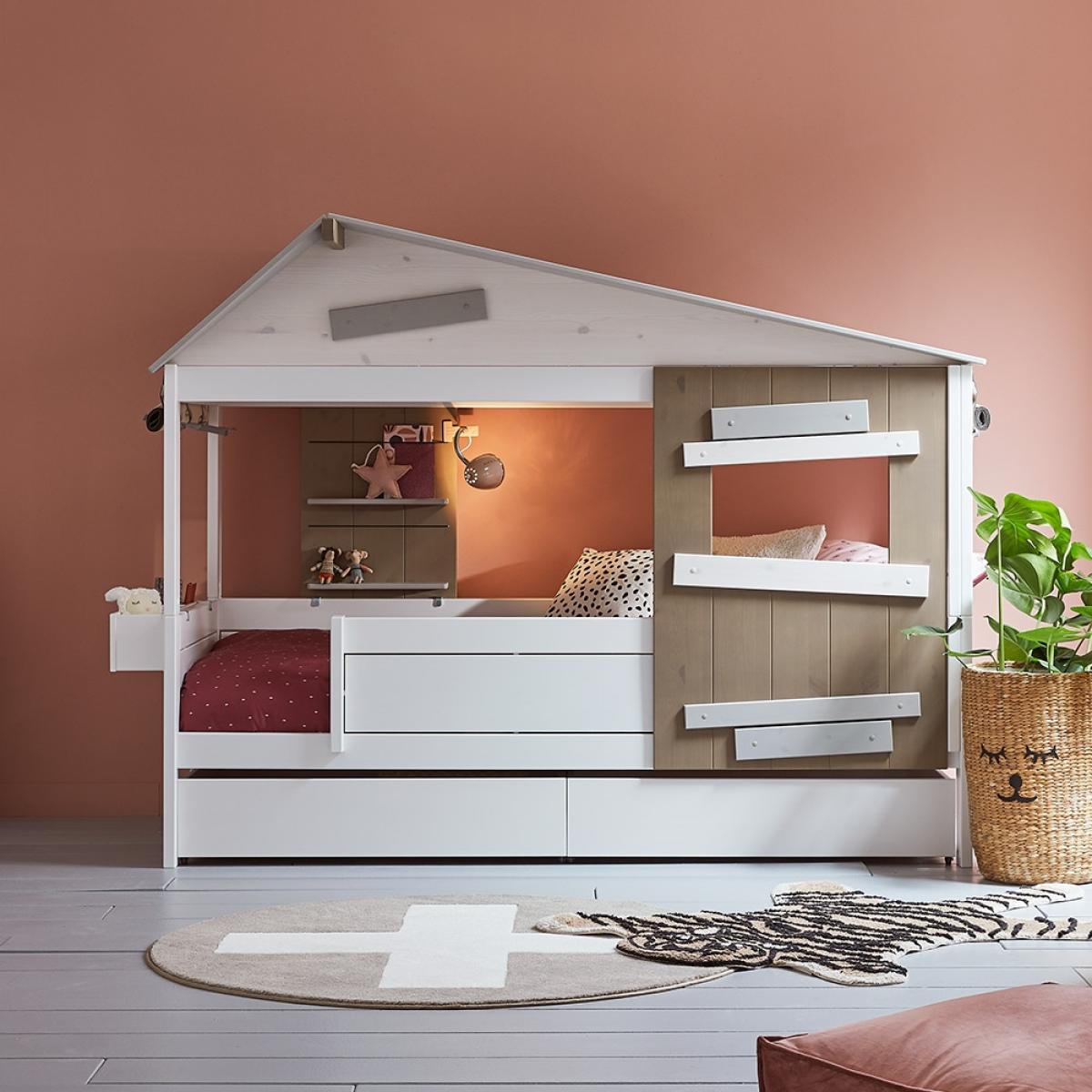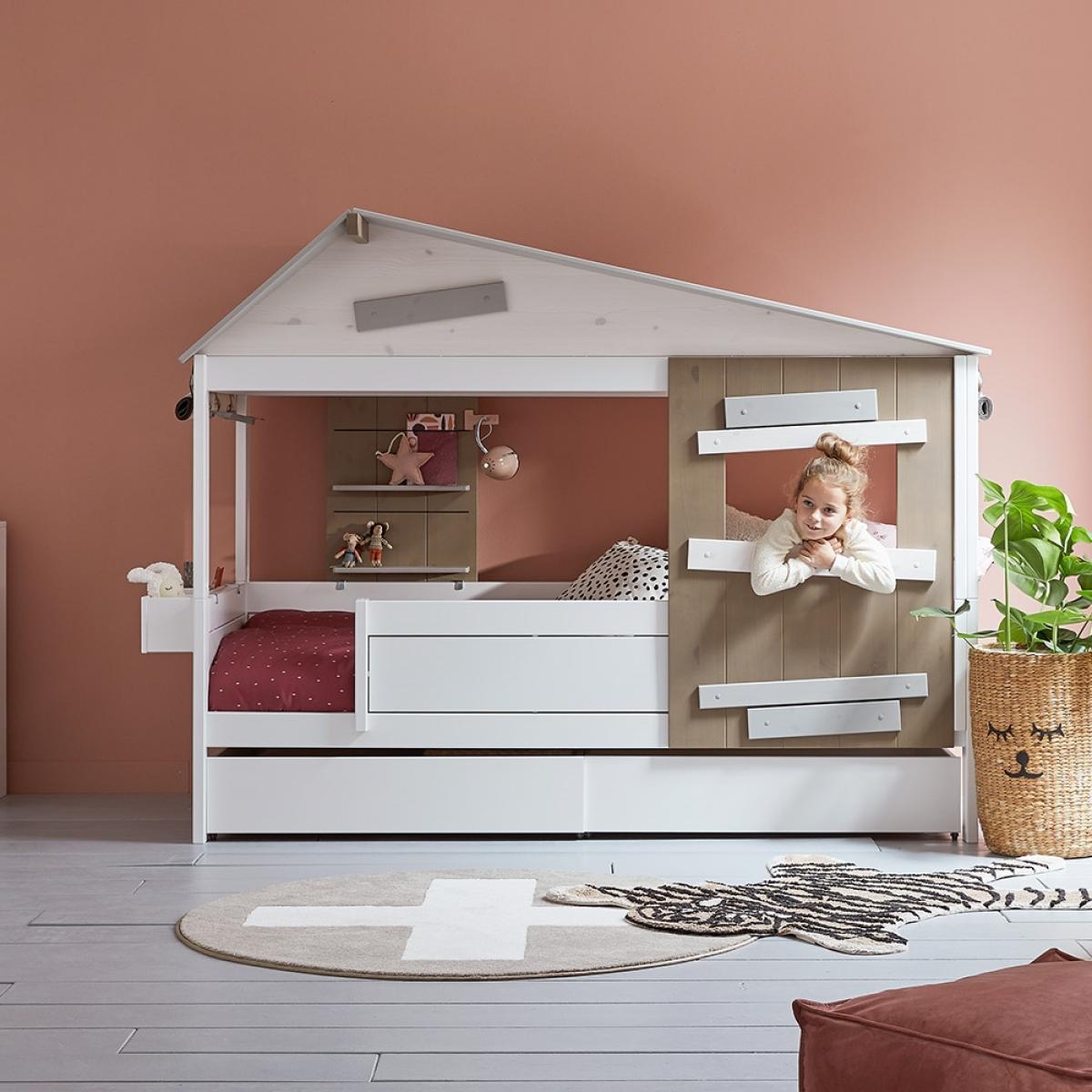 The Hideout Kids Bed from Lifetime will be your kiddies very own home away from home! Designed to look like a treehouse, with different coloured slats used to create a rustic finish, your youngster will love going to bed knowing this beauty awaits them. Beautifully manufactured from solid pine and handcrafted in Denmark, with a fabric roof including a window they can create their very own den whilst gazing at the stars - sounds perfect to us!.