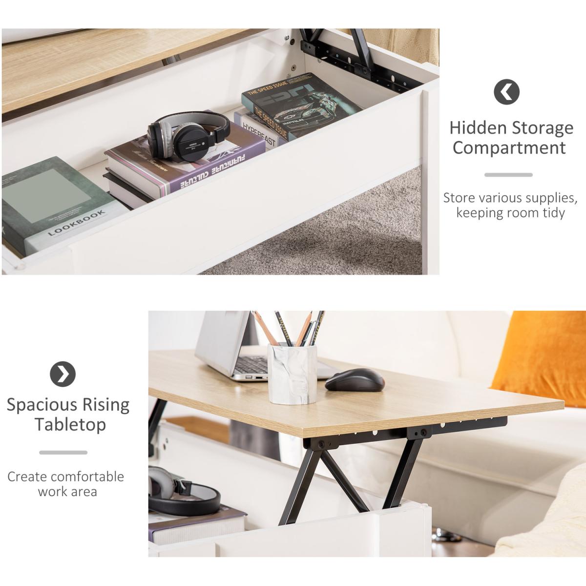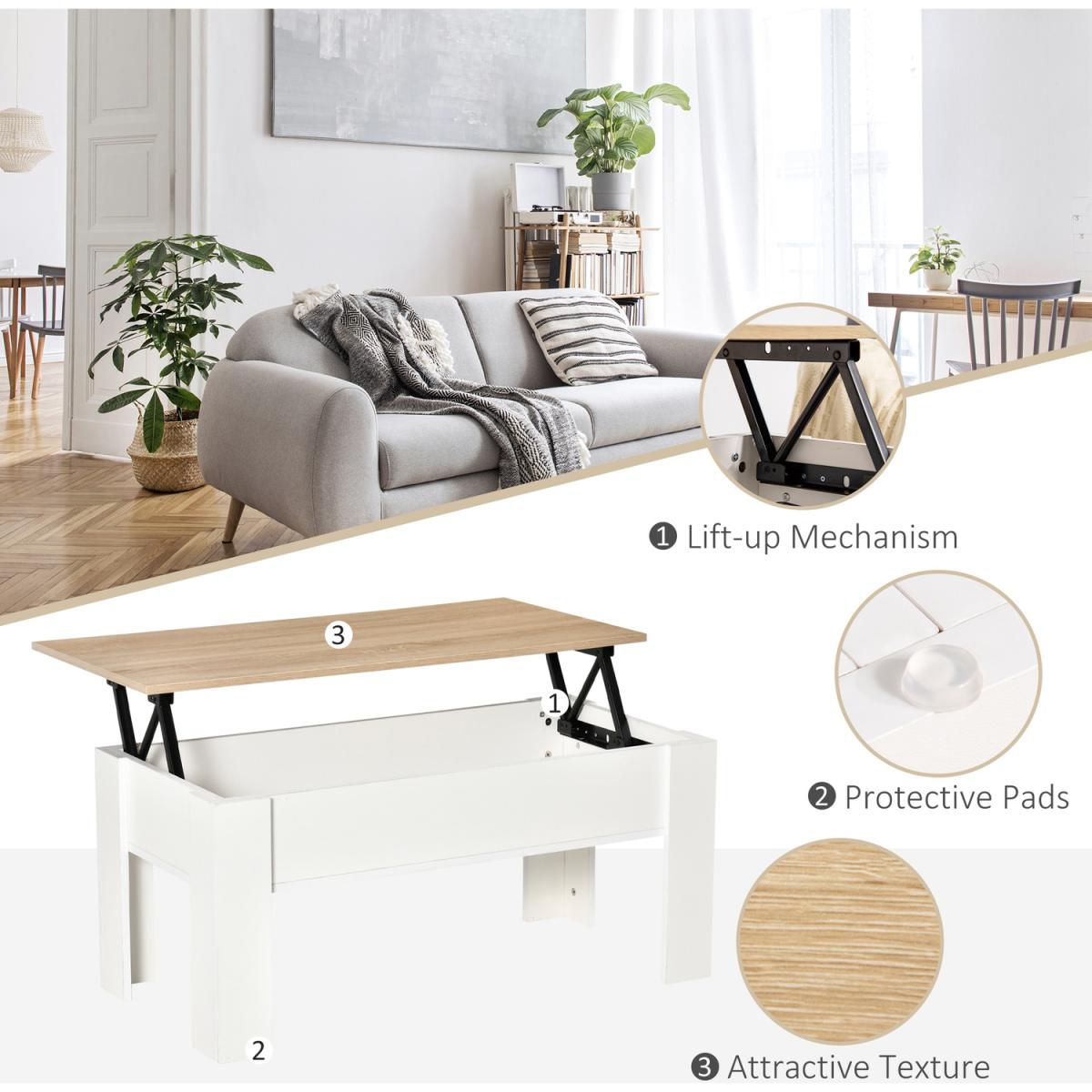 Lift Top Coffee Table with Hidden Storage Compartment - White, Oak