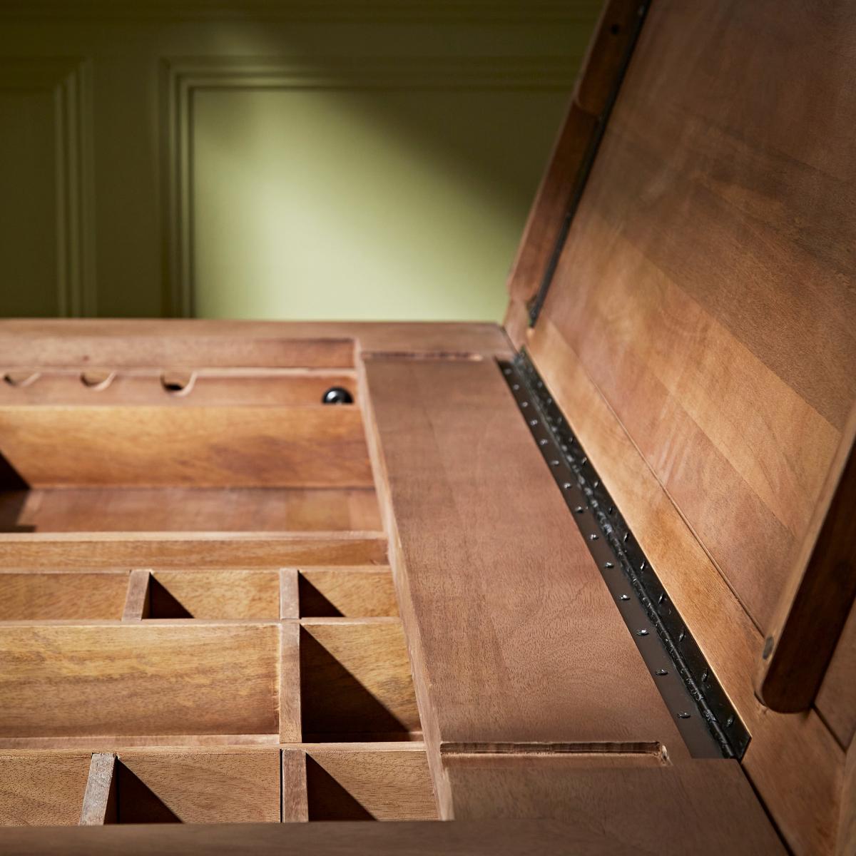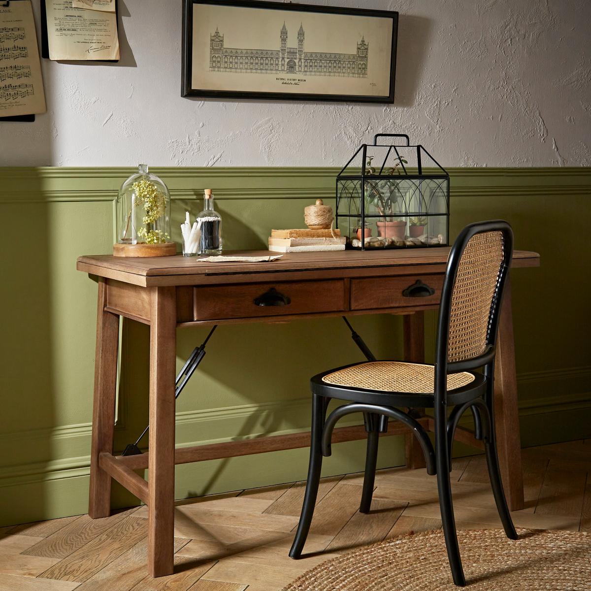 In collaboration with the Natural History Museum. This beautiful, hand assembled Draftsman Desk has been made with traceable mango wood that produces a beautiful grain and warm hue, and finished with replica cast handles. This desk has an easily adjustable worktop and can be height adjusted to 3 working heights. With drawers inspired by the historical specimen trays found at the Museum, this Lift Top Draftsman Desk is the perfect place to exhibit your most precious items and is sure to look beautiful in any home. Natural History Museum x Dunelm. The Lift Top Draftsman Desk is part of the Signature collection. This very special collaboration has been influenced by the Natural History Museum's incredible building. Taking inspiration from the Museum's unique architectural details and unmistakable Victorian décor, our contemporary collection makes it possible to bring a piece of natural history into your home. © The Trustees of the Natural History Museum, London 2022. All Rights Reserved.