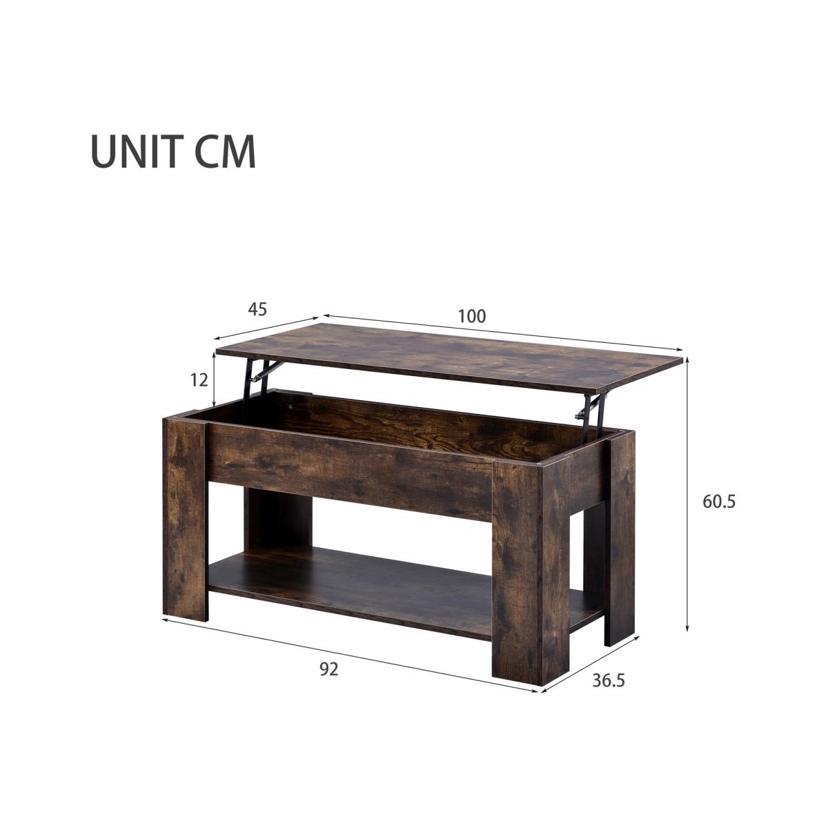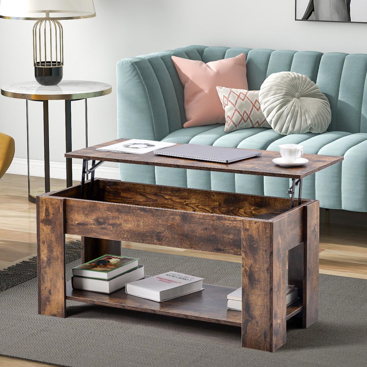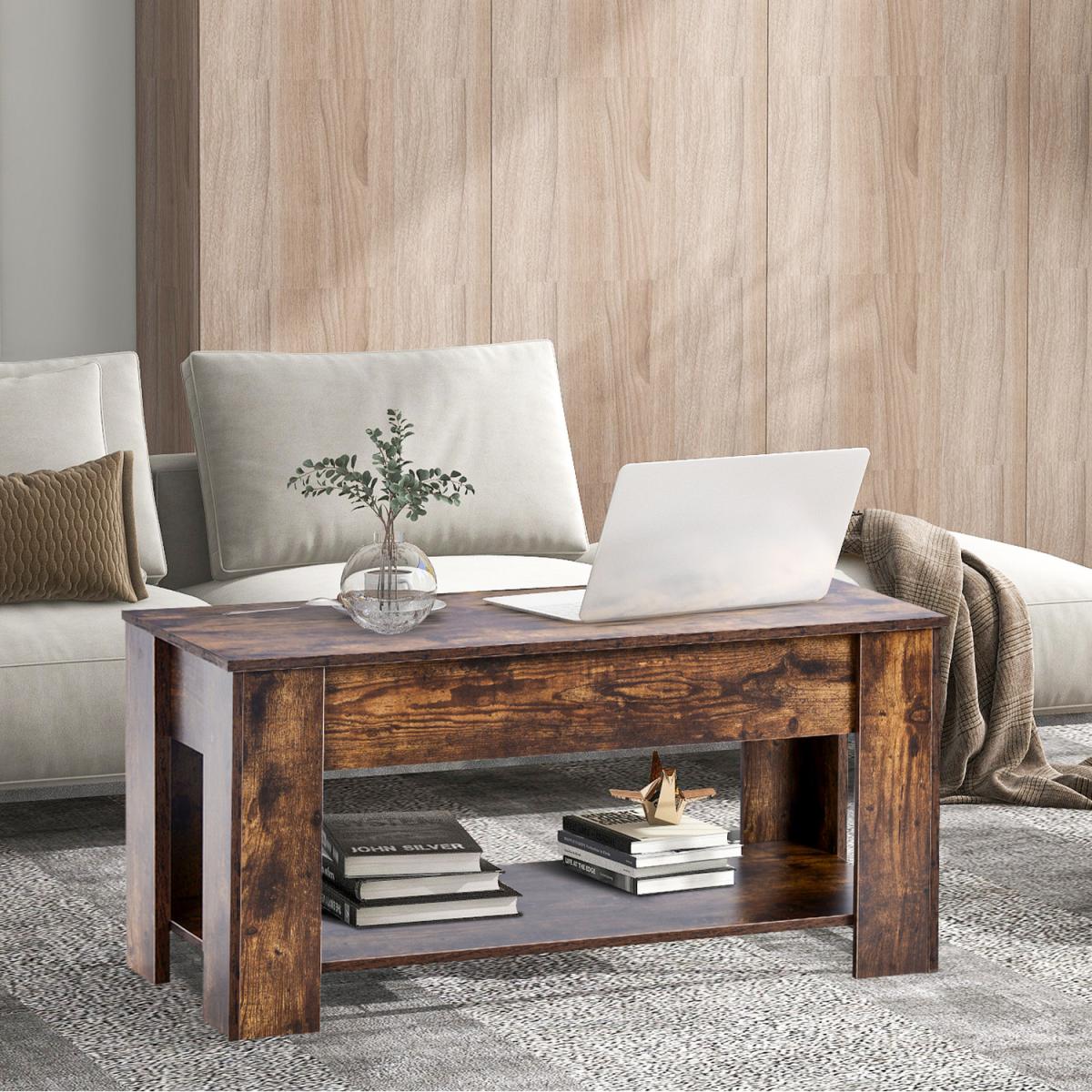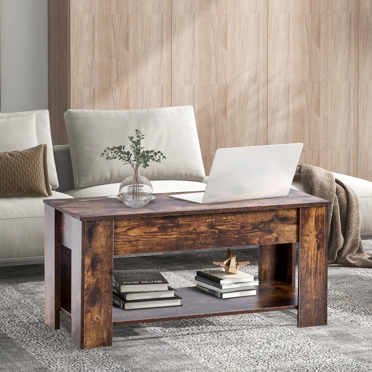 Lift Up Top Coffee Table with Storage and Shelf - Rustic Brown