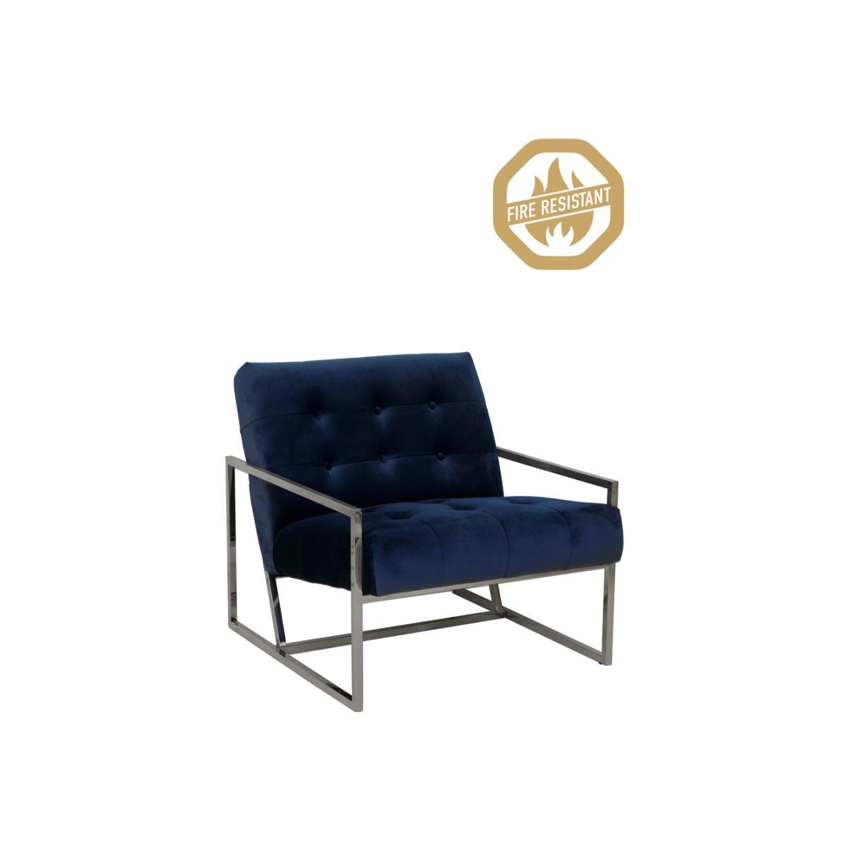 This sumptuous dark, inky blue velvet chair with a stylish button back measures at H: 70 x W: 81 x D: 71 cm. With its striking angled backrest and its inviting seat, the Geneve is a true statement occasional chair. The grey nickel frame is the ultimate minimalist functional design, providing light arm support and a secure seating position. Perfect for a bay window in a bedroom or a lounge, it would sit equally happily on bare wooden floorboards or a deep pile carpet, in a contrasting colour to the seat. Adding a bolster cushion to match your decor might help complete your interior look. *Moot Trading Ltd is not a lender and acts only as an introducer. The credit product is provided by Klarna Bank AB (publ). Credit is only available to permanent UK residents aged 18 and over, subject to status. Terms and conditions apply. Please note that the following products are not regulated by the FCA: Pay in 30 days and Pay in 3 instalments. Read More.