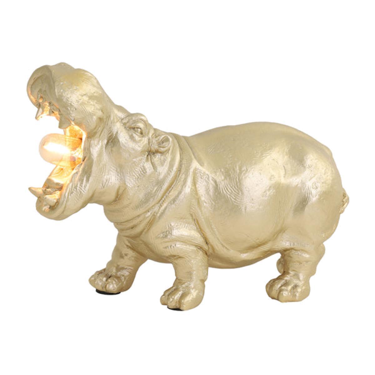 Light up your space with this cute and quirky Light & Living Hippo Matt Gold Table Lamp. This table lamp will add character and fun to any desk, side table, or bedside table. S. Tanding at 17. 5 cm high and 27cm long, this matt gold hippo lamp shines light from the bulb in the hippo's mouth. It works as a great lamp, adding to a safari or animal theme in your home, as well as the perfect ornament for your space. The hippo matt gold lamp will stand out and light up your bedroom, living area, or office space in your home. Materials: Plastic. Bulb Type: 1 x MiniatureE1. 4 25W - not included. Notes: Lamp supplied with a UK plug adapter. *Moot Trading Ltd is not a lender and acts only as an introducer. The credit product is provided by Klarna Bank AB (publ). Credit is only available to permanent UK residents aged 18 and over, subject to status. Terms and conditions apply. Please note that the following products are not regulated by the FCA: Pay in 30 days and Pay in 3 instalments. Read More.