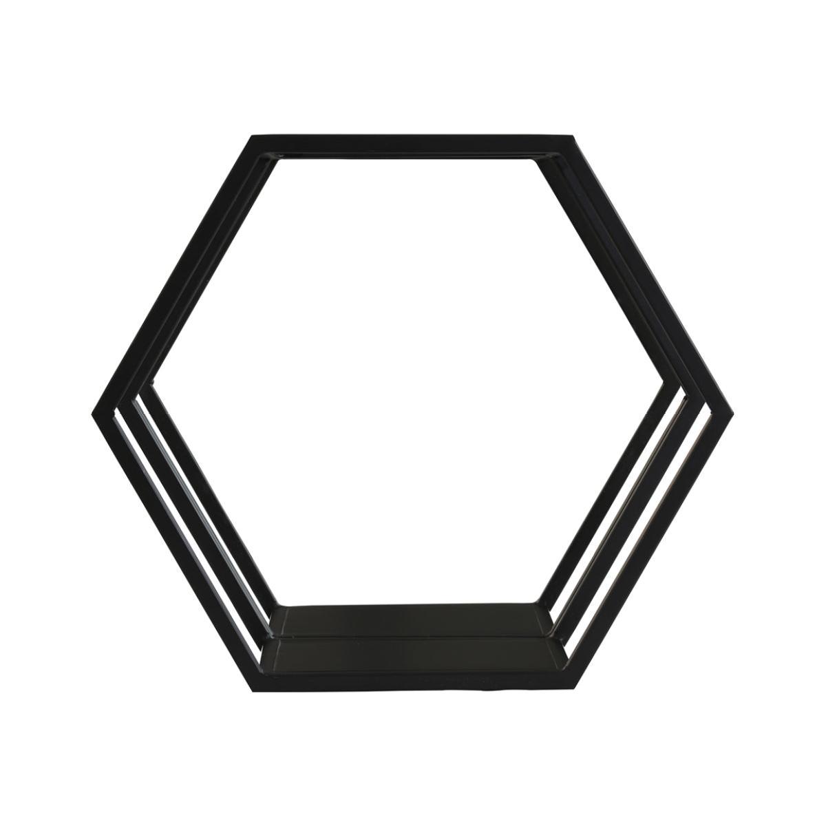These hexagonal Hual wall shelves from Light & Living are as stylish as they are practical. The set of two are made in black metal and with the right placement can instantly elevate any room. View More. These hexagonal Hual wall shelves from Light & Living are as stylish as they are practical. The set of two are made in black metal and with the right placement can instantly elevate any room. Some customers take advantage of their hexagonal form to assemble multiple sets into elaborate honeycomb configurations. Geometrical styling is also much in keeping with contemporary living and office space design and offers versatility you can enjoy for years to come. Use Hual shelving to display lush plants in the conservatory, toiletries in the bathroom, shoes in the cloakroom, photo frames in the living room or books in the study.