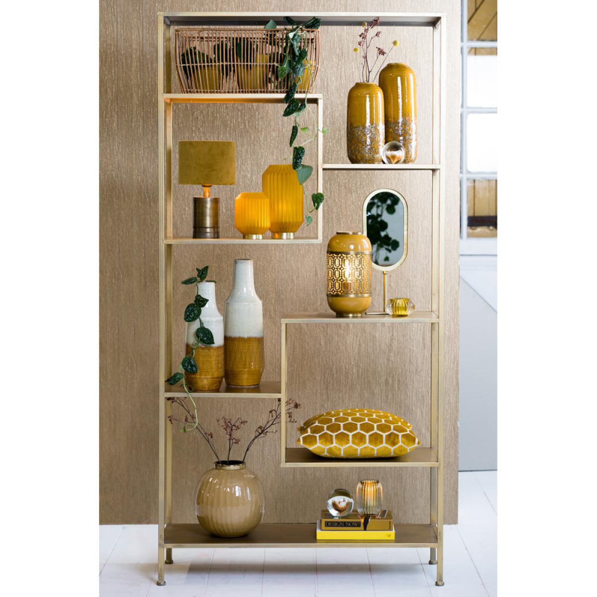 A stunning addition to any home, this chic Light & Living Nipas display cabinet is presented in a delightful antique gold. Suited to both classic and modern interiors, the cabinet allows for a variety of shelving opportunities. You may like to stage a plant, some flowers, a few novels or magazines and some personal photos on the shelves. This cabinet will enhance any room, and thanks to its golden tones it will match any colour scheme, whether you have chosen neutrals or bolder colours. Truly attractive and eye-catching as a focal feature, this is an ideal new piece for your modern home. Dimensions: H: 200 x W: 101 x D: 36 cm