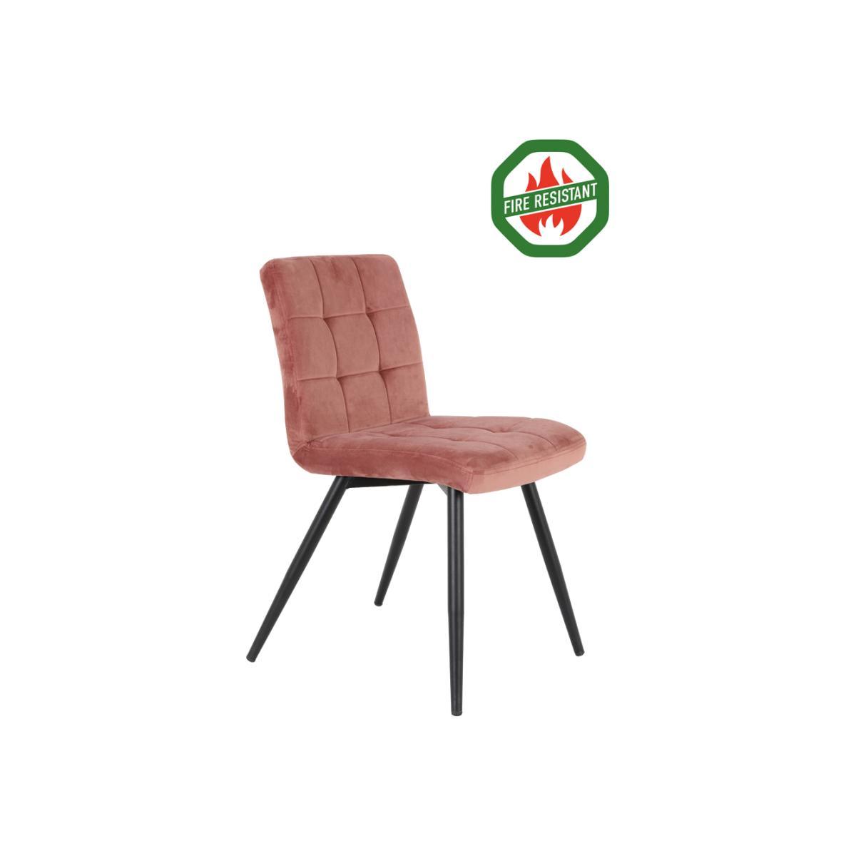 I love this dining chair for its playful yet sophisticated colour combo of old pink and black, making it a versatile addition to a variety of interiors. It works particularly well in retro-inspired or eclectic schemes, adding a pop of colour without overwhelming the space. Practical styling tips include pairing it with a sleek glass or wooden table to highlight its soft upholstery, or mixing it with other textured or patterned pieces for an eclectic dining area. Its compact design makes it suitable for smaller dining rooms or as an accent piece for a stylish, modern look. The black legs lend a contemporary edge, while the pink fabric keeps it warm and inviting.