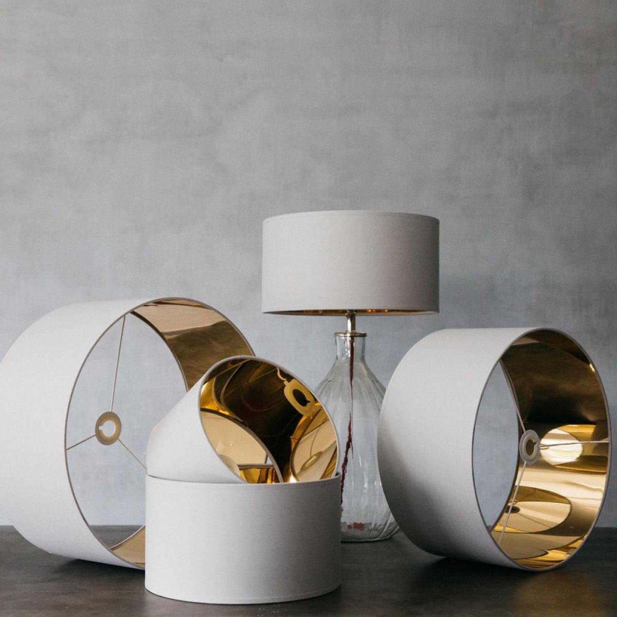 Our collection of light grey cotton lamp shades are subtle and understated, perfect for complementing chic, minimalist interiors. The metallic gold inside of the shades gives them a bold twist that ensures a touch of unique style.
