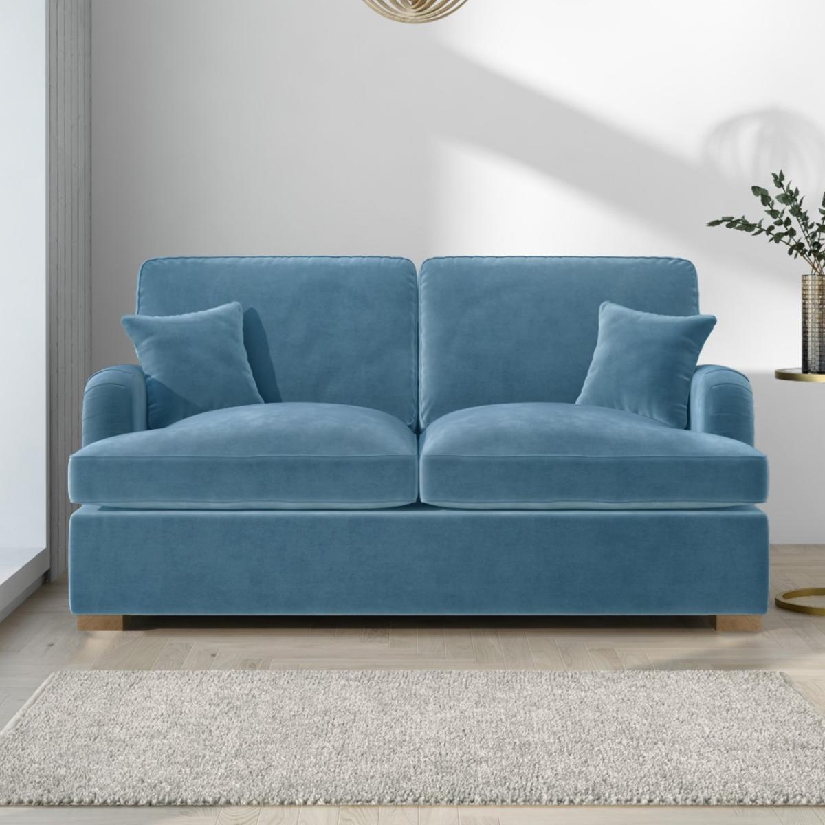 Luxury velvet Sofa Bed with matching throw cushions Great for guests - just pull out the in-built bed Deep seated sofa with large cushions- perfect for 2 people Comes in a range of different colours to suit your style All About Me Experience the ultimate comfort of the two-seater Payton pull out Sofa Bed. It features a curvy modern silhouette to comfortably seat two people and comes with two matching throw cushions for added decoration and comfort. Its easy and hidden away pull-out mechanism makes it the perfect solution for when guests come to stay. Need to know Weight: 76kg Colour: Blue Sofa size: 2-seater Material: Soft high-quality velvet Sofa bed mechanism: Pull out Sofa bed size: Sleeps 2 Mattress included: Yes Assembly needed: Yes - Just attach the feet
