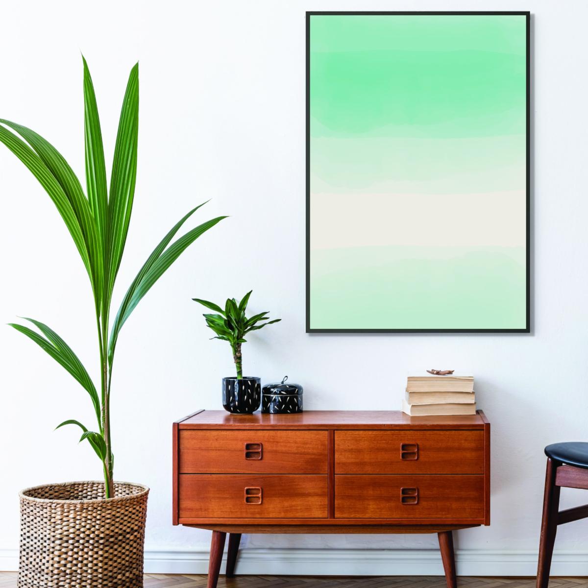 I really like the light green watercolour print, as it offers a calming, fresh vibe that works well in both modern and traditional interiors. Its soft, muted palette makes it versatile-perfect for a living room, bedroom, or even a bathroom to add a subtle splash of colour without overpowering the space. When styling, consider pairing it with neutral tones like beiges, greys, or whites for a minimalist look, or combine with darker woods or metallic accents for a more sophisticated feel. Practical tips include framing it with a simple frame to maintain its understated elegance, and positioning it at eye level for maximum visual impact. This piece is a great choice for adding a touch of tranquillity and colour to any setting.